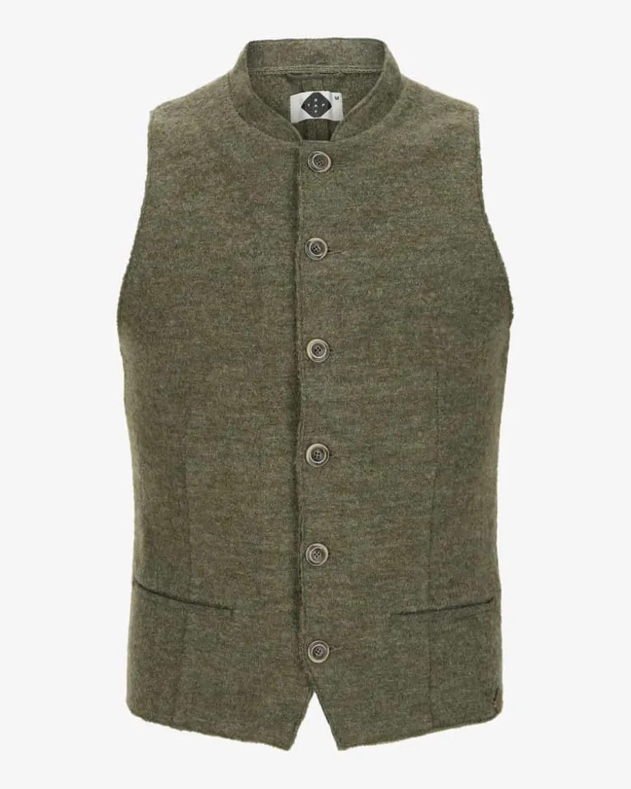 Gernot Trachtenweste für Herren von Stapf in Schilf. Gefertigt aus hochwertigerLoden-Qualität, überzeugt das Modell in traditioneller Aufmachung, während dieKnopfleiste sowie Paspelierungen den rustikalen Trachten-Look gekonnt vollenden.