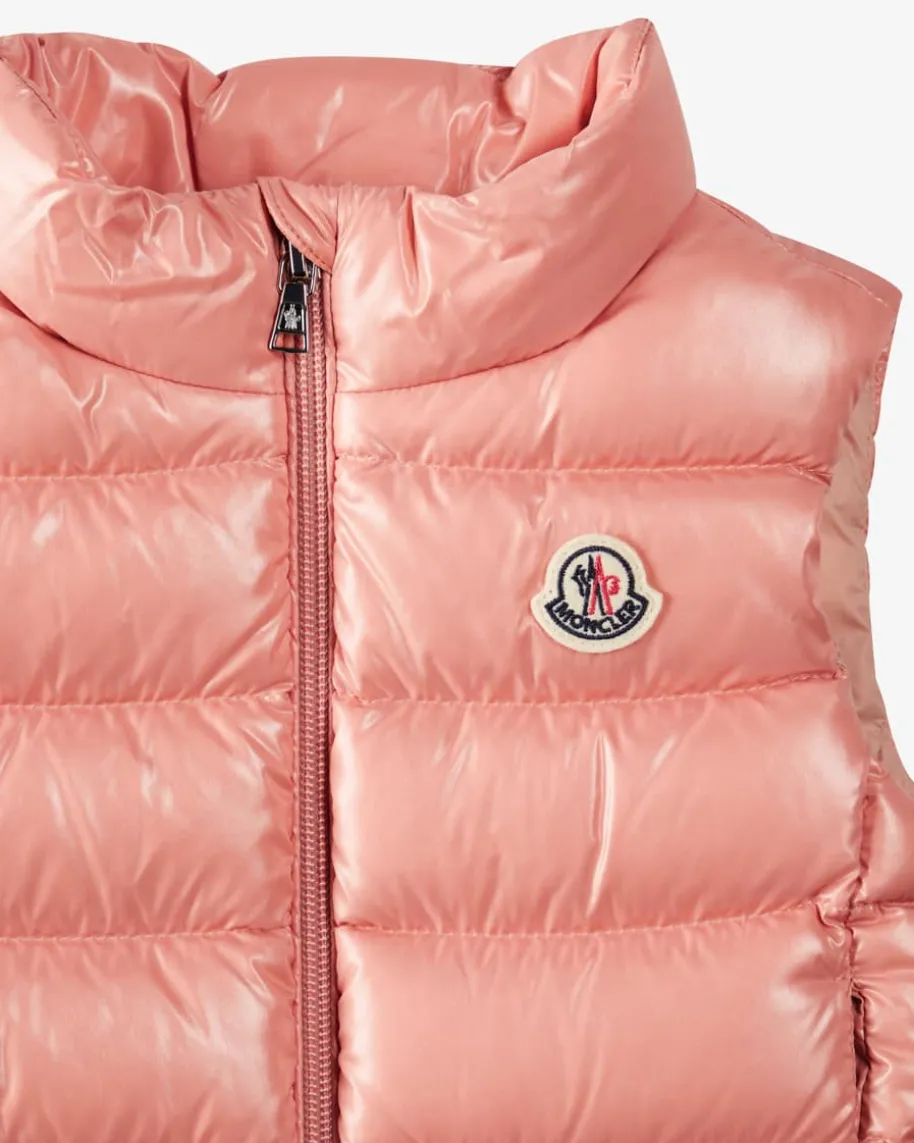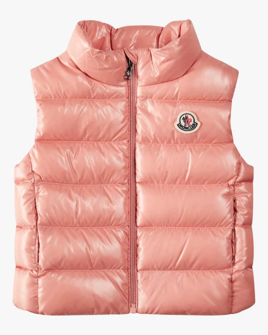 Ghany Daunenweste für Babys von Moncler Enfant in Rosa. Das gesteppte Modellbegeistert in sportiver Aufmachung mit changierender Material-Qualität, währenddie hochwertige Daunen-Feder-Füllung den perfekten Übergangs-Begleiter schafft.Die labeltypische Logo-Applikation rundet den modischen Style gekonnt ab.