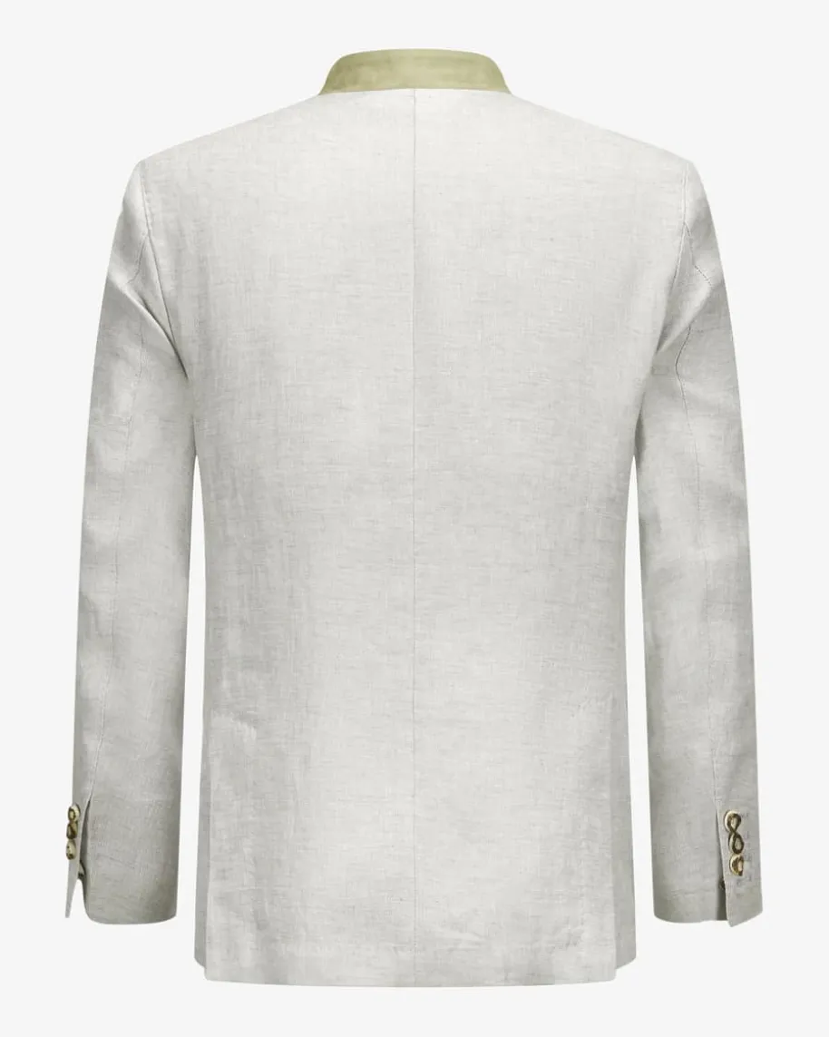 Giesing Trachten-Janker für Herren von Windsor in Hellgrau und Oliv. SchlichteEleganz gepaart mit traditionellen Details schaffen ein modernes Gesamtbild,welches zugleich durch die Verwendung der hochwertigen Leinen-Qualität sowie denVeloursleder-Details zum edlen Begleiter für stilvolle Trachten-Looks avanciert.