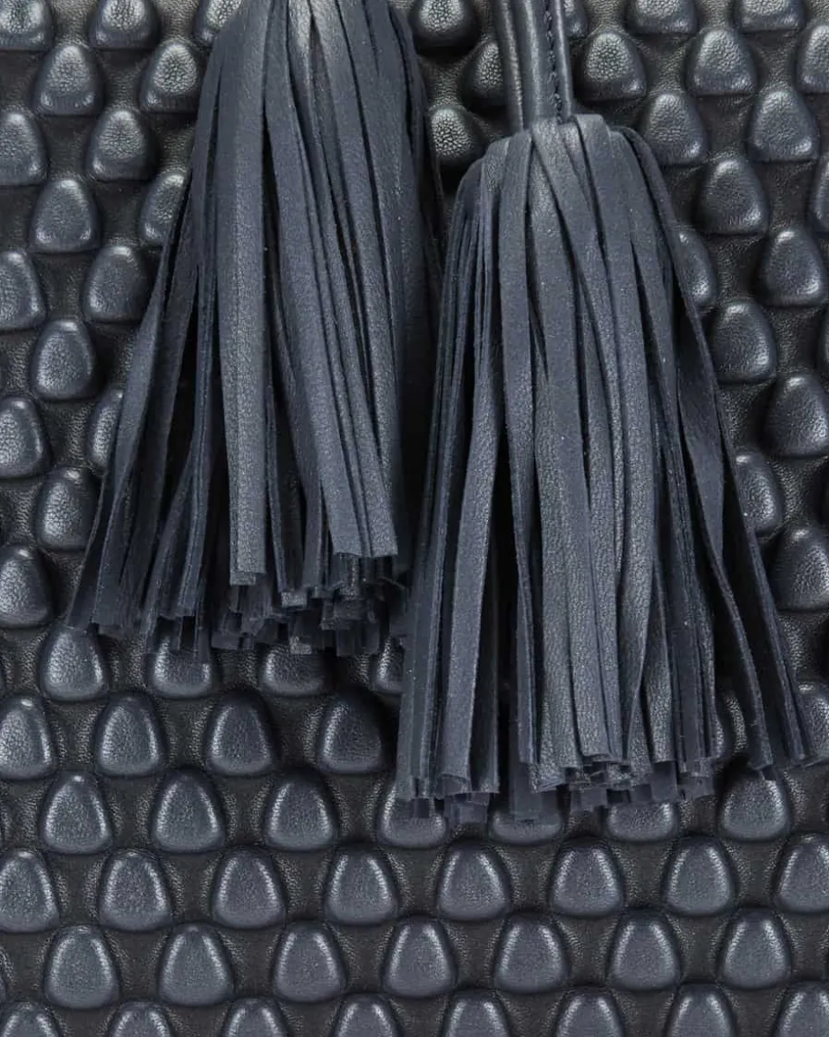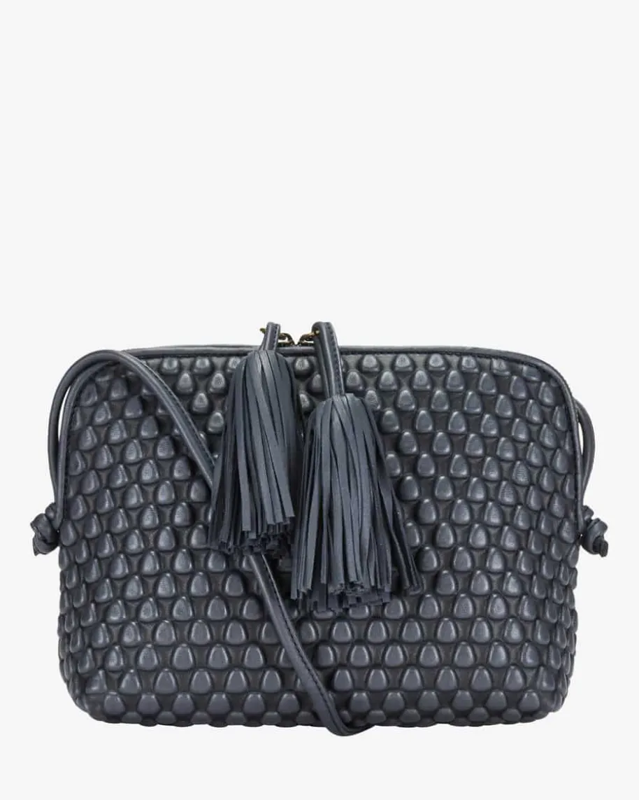 Gizmo Umhängetasche für Damen von Tissa Fontaneda in Navy. Das 2010 gegründeteLabel vereint Handwerkliches Können und Liebe zum Detail. Die sofort erkennbare„Bubble Bag“ ist zum Markenzeichen der Kollektion Tissa Fontaneda geworden. Auchdieses Modell begeistert in charakteristischer Aufmachung mit strukturierterOptik, während die Quasten-Applikation den letzten Schliff verleiht.