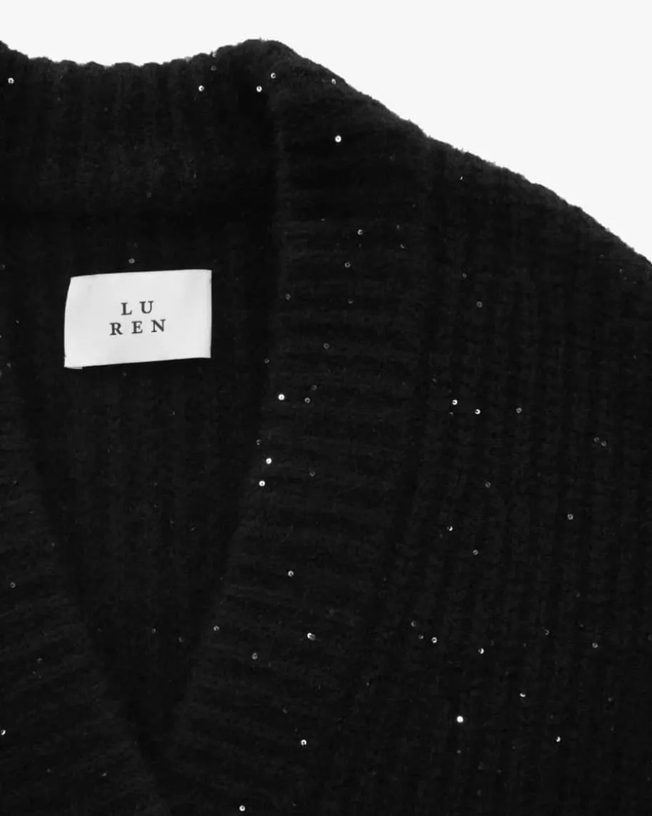 Gunby Strickjacke für Damen von Lu Ren in Schwarz. Dank der Verwendung vonhochwertigem Cashmere-Baumwoll-Mix besticht das Modell mit besonders weichemGriff, während das schwere Strick-Design in Oversize-Passform einen legerenCasual-Favoriten für Ihre Herbst-Winter-Garderobe schafft. Zarte Pailletten-Applikationen sorgen zugleich für einen stilvollen Touch.