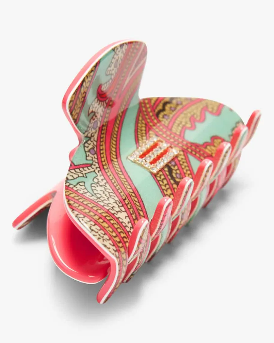 Haarklammer für Damen von Etro in Koralle, Türkis und Bunt. Die Haarspangezeichnet sich durch das labeltypische Paisley-Dessin sowie den edlenSchmuckstein-Besatz ausund avanciert so zum stilvollen Accessoire, das jeder Frisur das gewisse Etwasverleiht.