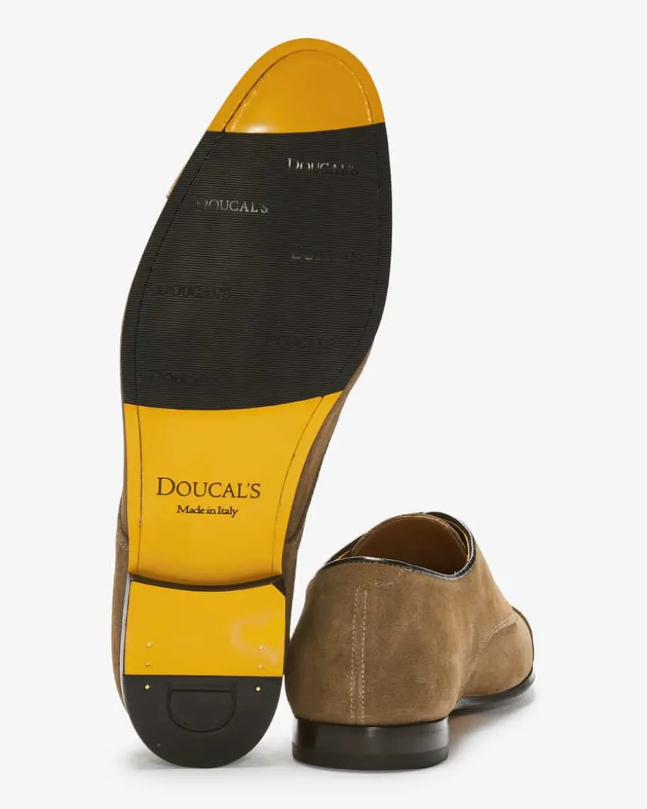 Halbschuhe für Herren von Doucal’s in Hellbraun. Die Kombination aushochwertigem Veloursleder und feiner Handarbeit zeichnet dieses Modell besondersaus. Zugleich kreieren die schmale Derby-Form sowie Ziernähte mit abgenähterZehenkappe einen maskulinen Begleiter für klassisch-elegante Looks.