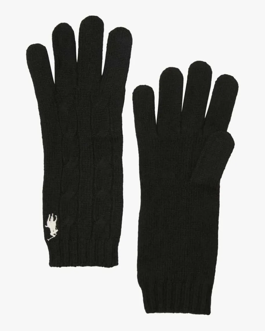 Handschuhe für Damen von Polo Ralph Lauren in Schwarz. Das Modell begeistertdank des hochwertigen Woll-Cashmere-Mix mit angenehmem Tragegefühl, während daszeitlose Zopfstrick-Design mit Rippstrick-Bündchen einen perfekten Begleiter fürkalte Tage kreiert.