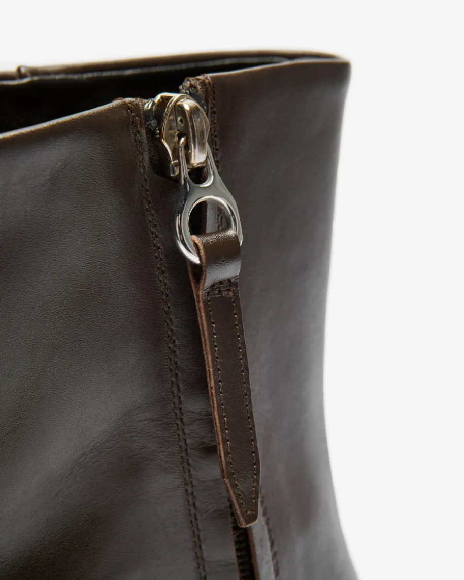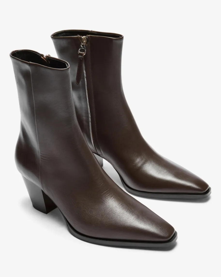 Hedvig Stiefeletten für Damen von Ayede in Mokka. Dank der Verwendung vonglattem Kalbsleder entsteht ein hochwertiger Schuh, während die Cowboystiefel-Silhouette mit charakteristischem Absatz und spitzer Form einen modischenEquestrian-Charakter verleiht.