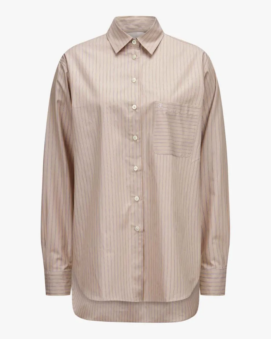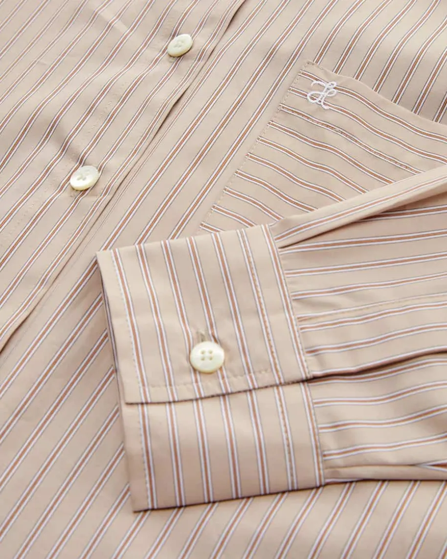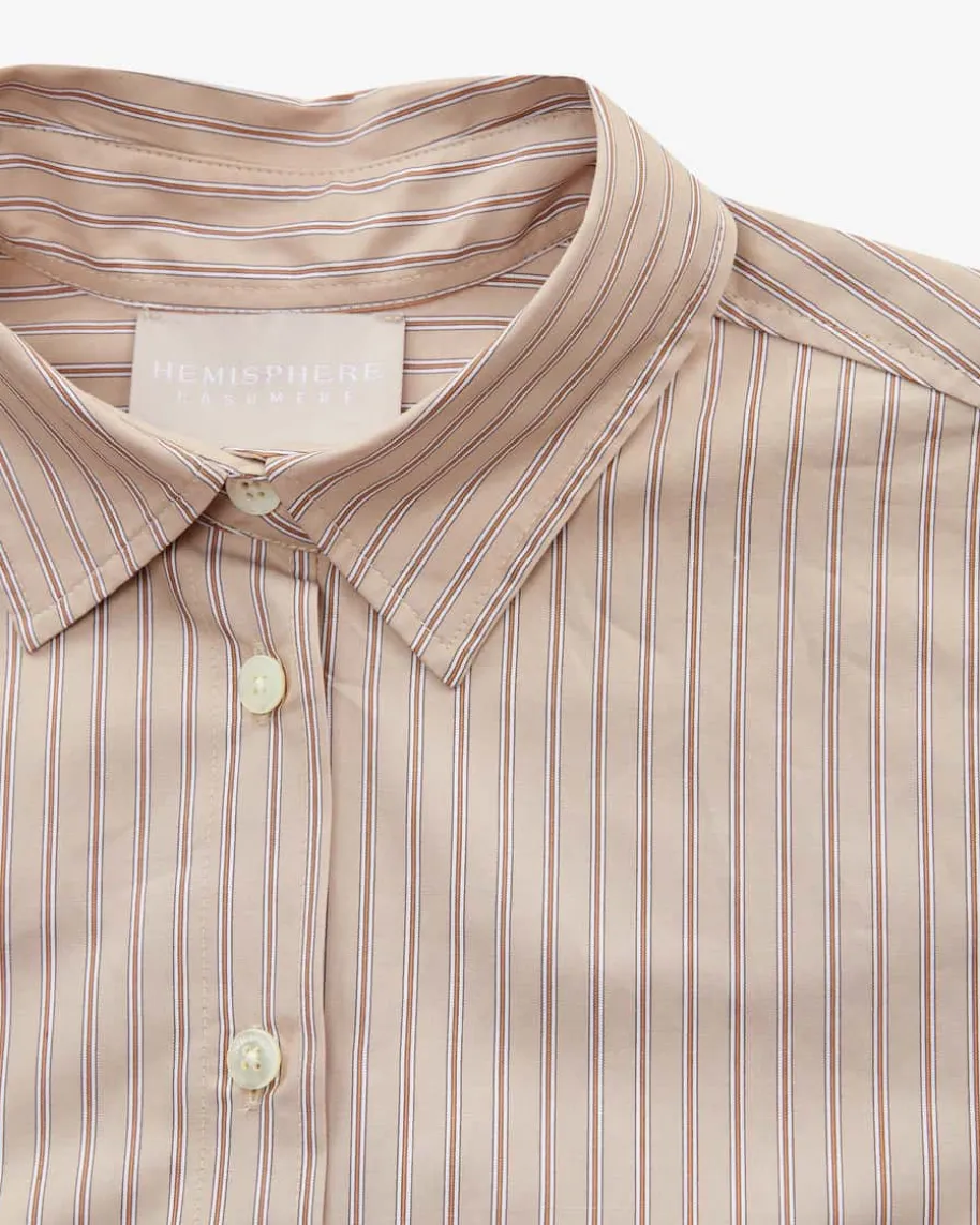 Hemdbluse für Damen von Hemisphere in Beige, Weiß und Orange. Das Modell inlegerer Aufmachung punktet in modisch weiter Passform aus angenehm leichterBaumwoll-Qualität, während die klassischen Details zusammen mit dem zartenStreifen-Dessin einen Casual-Liebling zaubern.