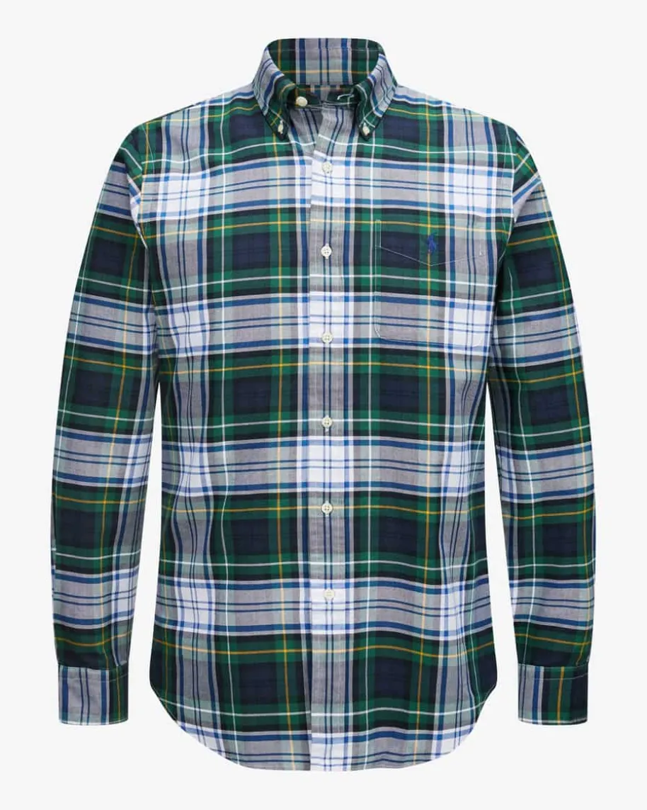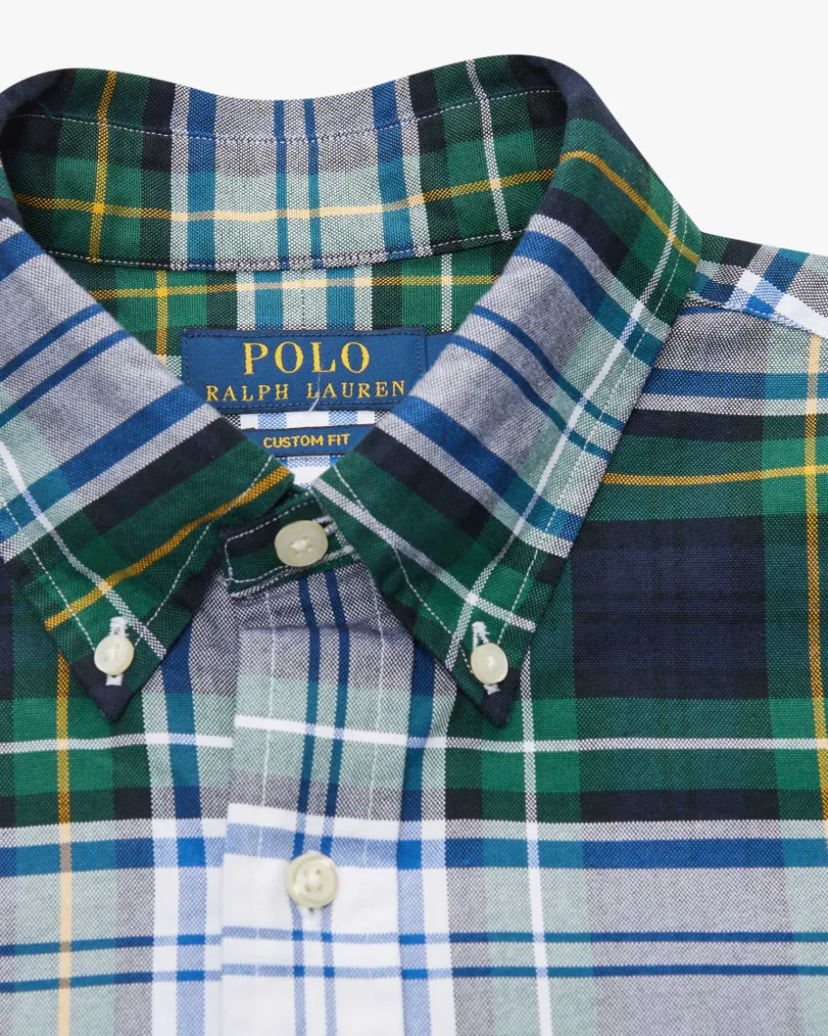 Hemd Custom Fit für Herren von Polo Ralph Lauren in Dunkelgrün, Blau und Weiß.Das antaillierte Modell begeistert mit weicher Baumwoll-Qualität und modernemKaromuster, während klassische Details sowie die charakteristische Logo-Stickerei das Gesamtbild maskulin vollenden.