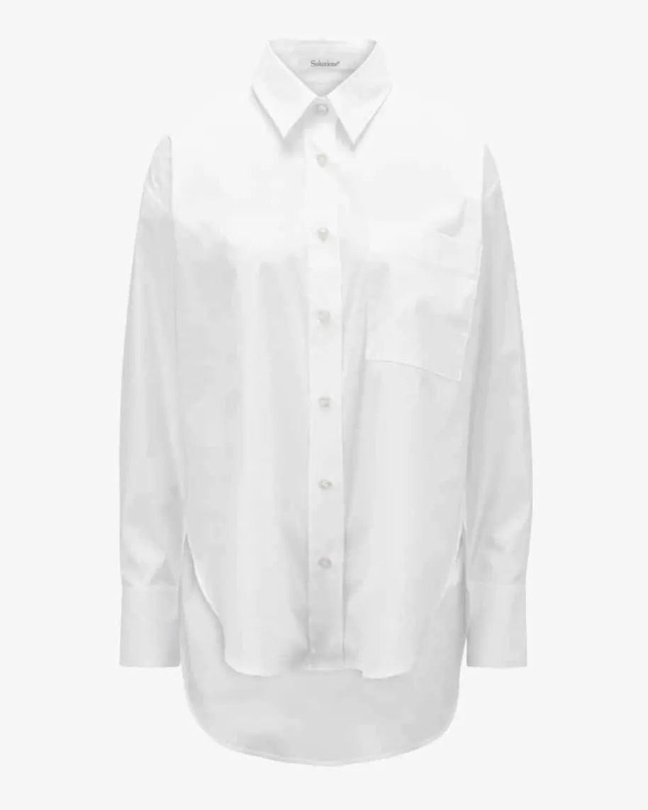 Hemdbluse für Damen von Soluzione in Weiß. Während die angenehm elastischeBaumwoll-Qualität für hohen Tragekomfort sorgt, avanciert das Modell dank weiterPassform und verlängerter Rückseite zum stilvollen Business-Begleiter mitmodischem Touch.
