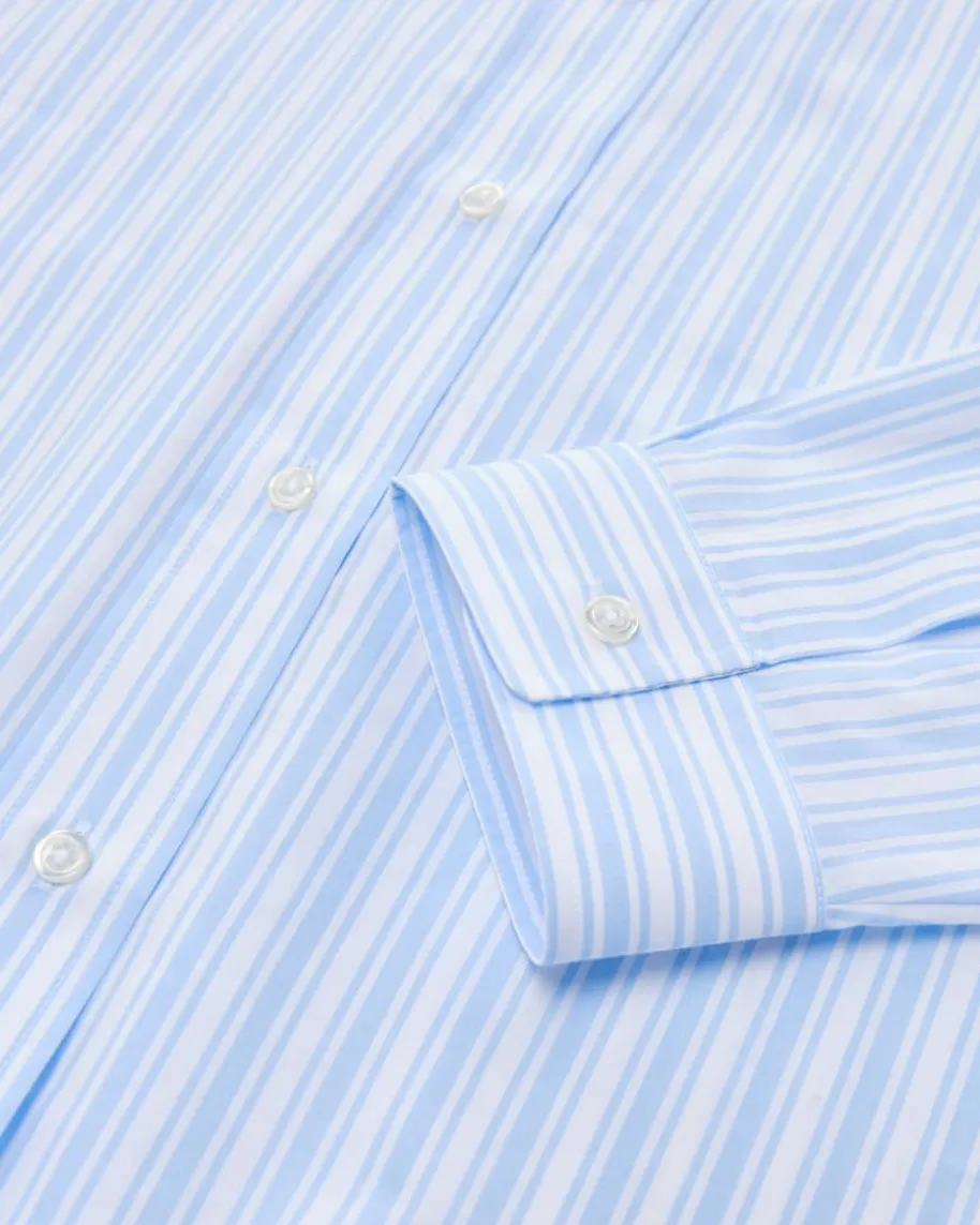 Hemdblusen für Damen von Soluzione in Hellblau und Weiß. Das Oversize-Modellbesticht dank des modischen Streifen-Dessins als stilvoller Favorit, währendklassische Details das Gesamtbild harmonisch abrunden.