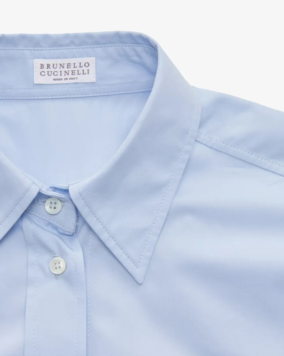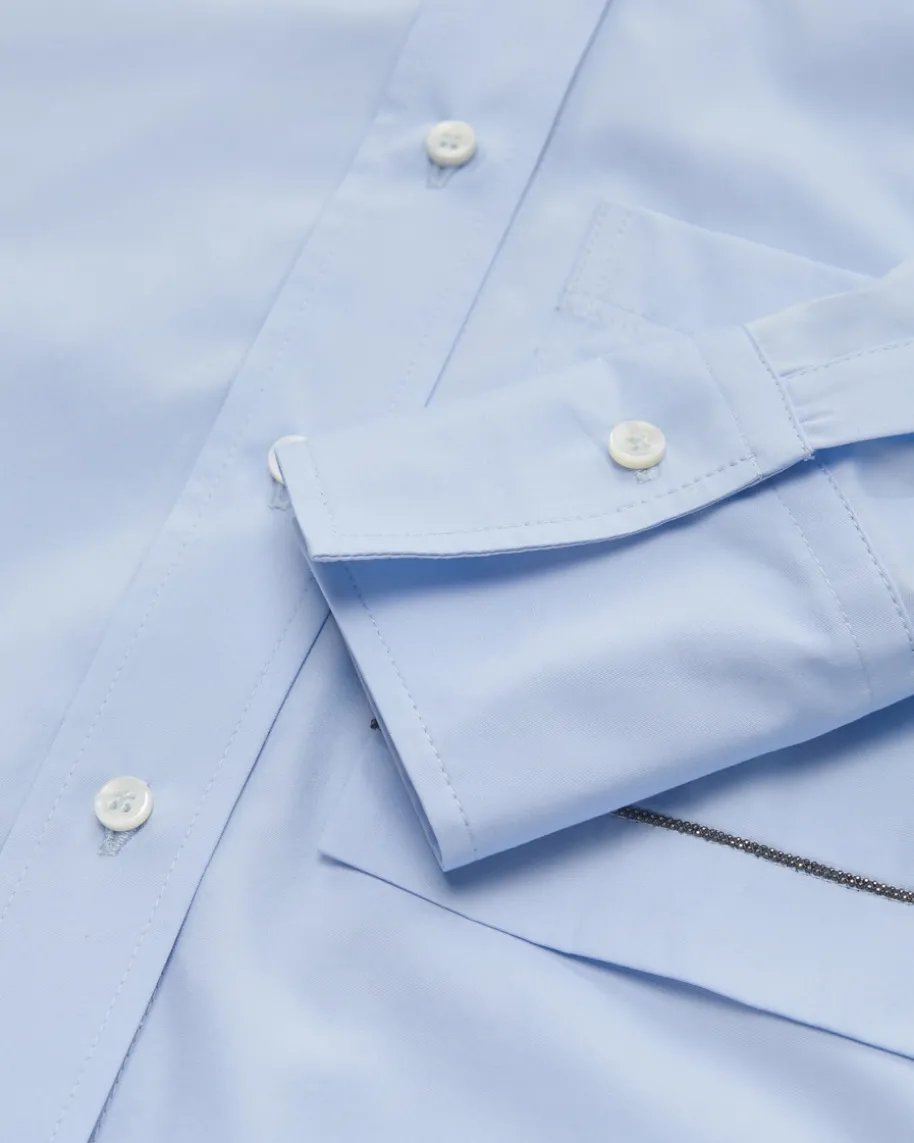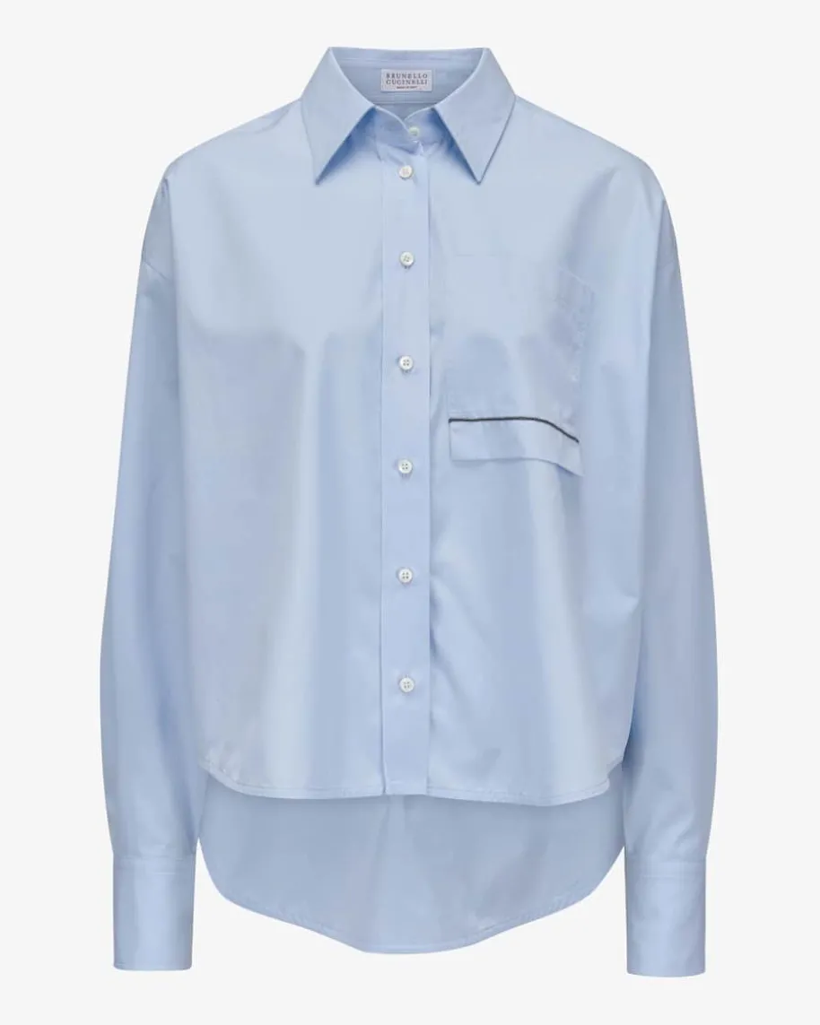 Hemdbluse für Damen von Brunello Cucinelli in Hellblau. Das Modell in weiterBoxy-Passform überzeugt mit hochwertiger Baumwoll-Qualität, während dielabeltypische Ketten-Applikation für besonderes Augenmerk sorgt.