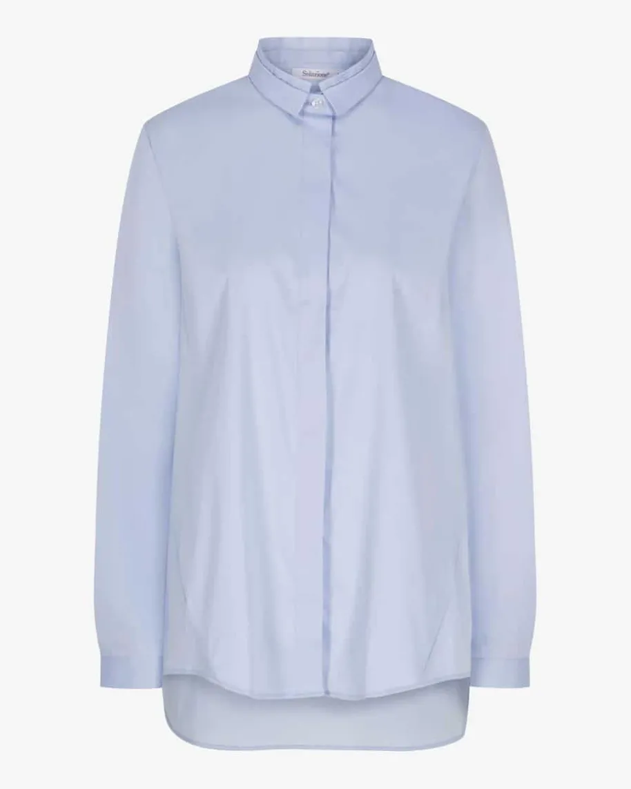 Hemdbluse für Damen von Soluzione in Hellblau. Während die elastische Stoff-Qualitätfür hohen Tragekomfort sorgt, schaffen das cleane Design sowie die ausgestelltePassform einen leger-klassischen Look.