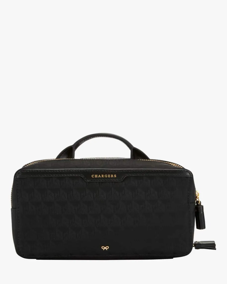 Home Office Tasche für Damen von Anya Hindmarch in Schwarz. Dieses Modellerweist sich durch seine zahlreichen Fächer als perfekte Aufbewahrungs-Möglichkeit für Bürozubehör wie Smartphone, Kopfhörer, Ladegerät und Brille.Tonige Quasten-Details sowie goldfarbene Reißverschlüsse verleihen dempraktischen Essential das gewisse Etwas.