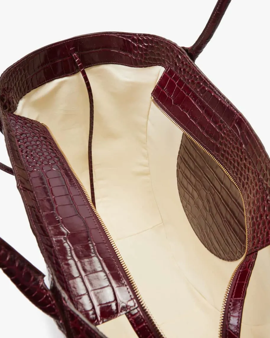 Hortensia Shopper für Damen von Wandler in Bordeaux. Die Amsterdamer Marke stehtfür moderne Handtaschen mit klaren Linien und Farbblöcken – feminin undarchitektonisch. Auch dieses Modell in Halbmondform überzeugt in hochwertigerKalbsleder-Qualität und geprägter Krokodil-Optik, während das geräumigeHauptfach und der abnehmbare Schulterriemen einen zeitlosen Begleiter schafftder sich vielseitig stylen lässt.