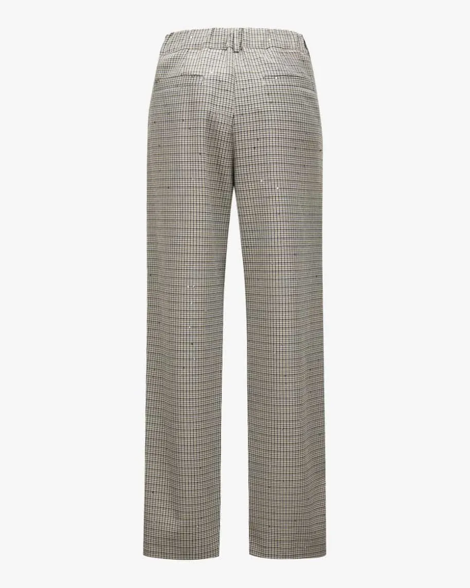 Hose für Damen von Shirtaporter in Blau, Creme und Gold. Dieses Modellpräsentiert sich mit feinem Karo-Webmuster und modisch-weitem Schnitt, währenddie Glitzer-Fasern und feine Pailletten edle Akzente setzen. Die Bundfalten undder teilelastische Bund runden den Look gekonnt ab.