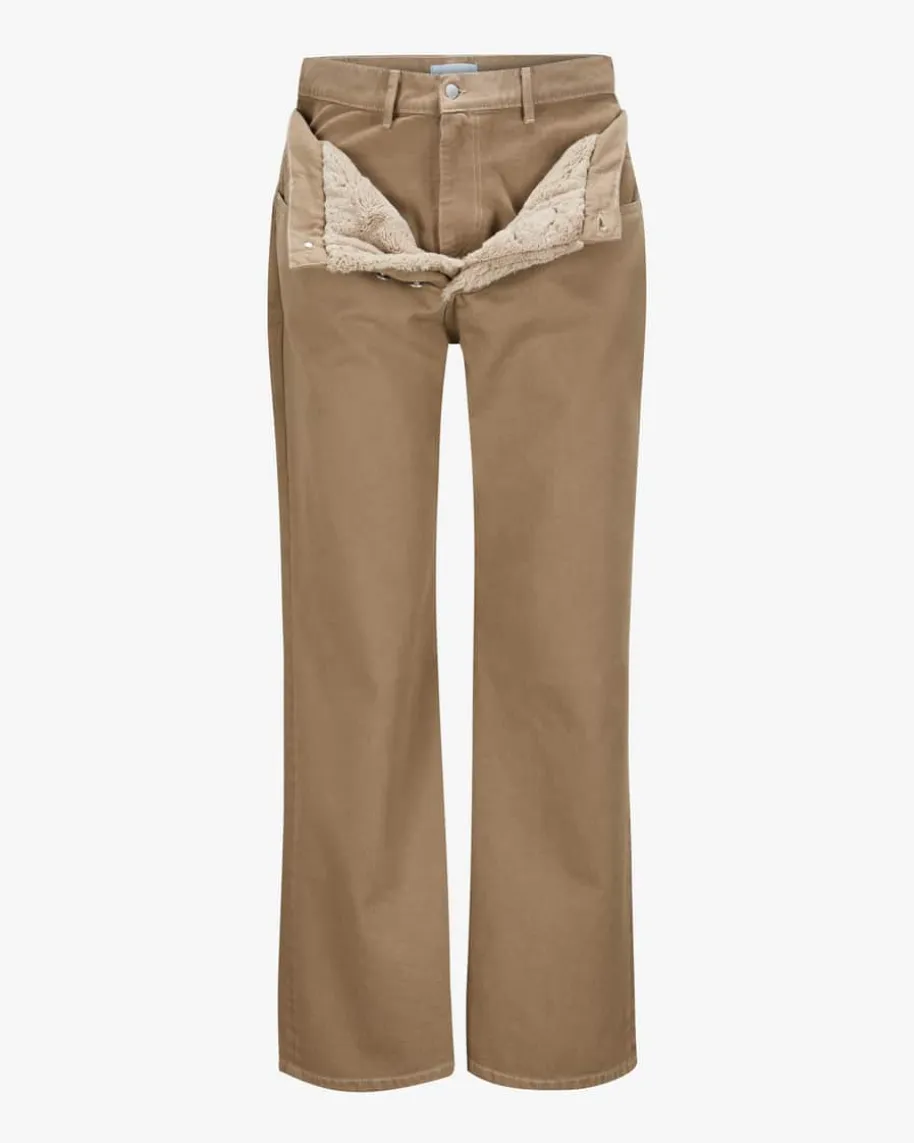 Hose für Herren von 3.Paradis in Beige. Das modische Five-Pocket-Modellpräsentiert sich dank der zweilagigen Aufmachung als extravaganter Streetwear-Favorit, während das innenliegende Kunstfell dem Gesamtbild das gewisse Etwasverleiht.