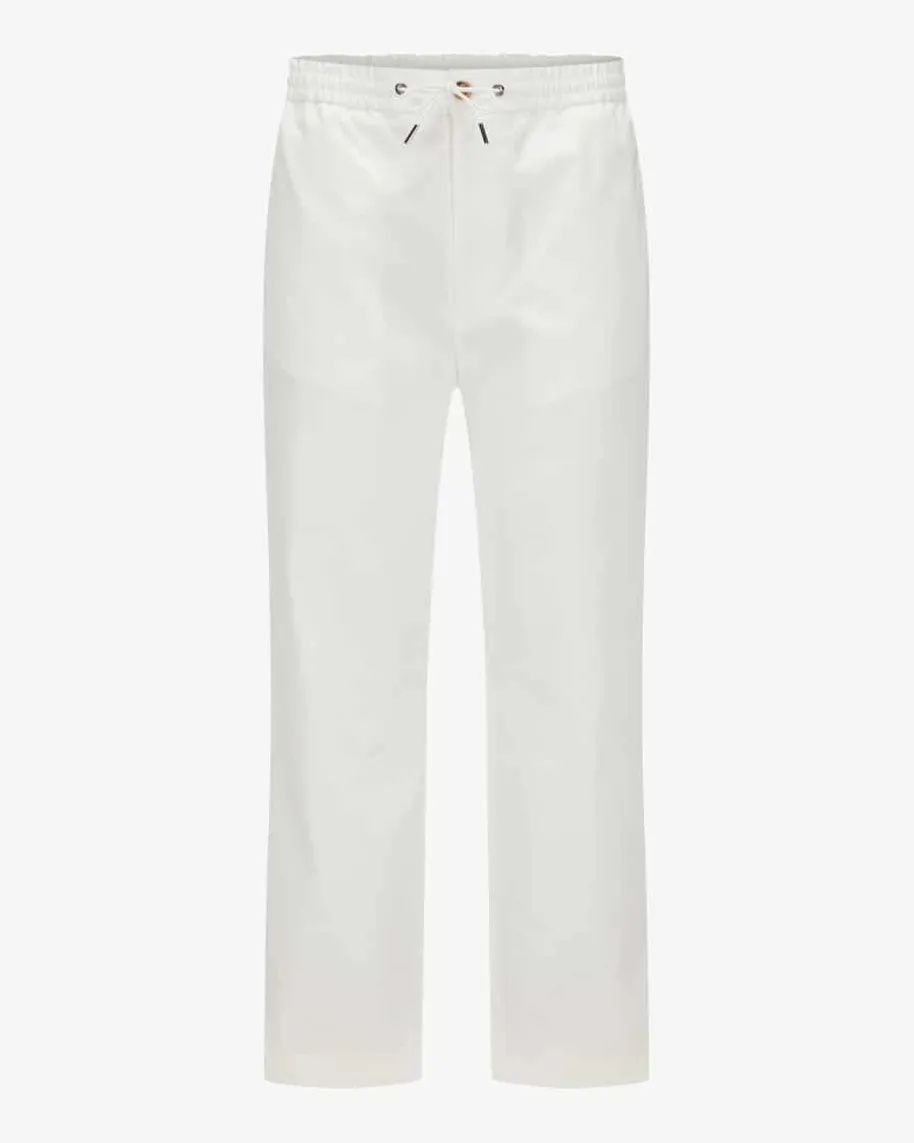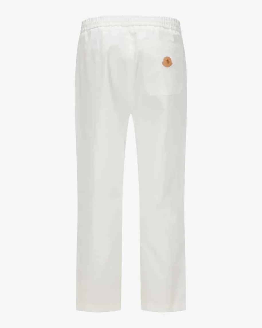 Hose für Herren von Moncler in Weiß. Das Modell punktet dank der angenehmenBaumwoll-Qualität sowie dem legeren Schnitt mit elastischem Bund mit einem hohenTragekomfort, während das cleane Design mit rückseitigem Leder-Patch einmodisches Gesamtbild kreiert.