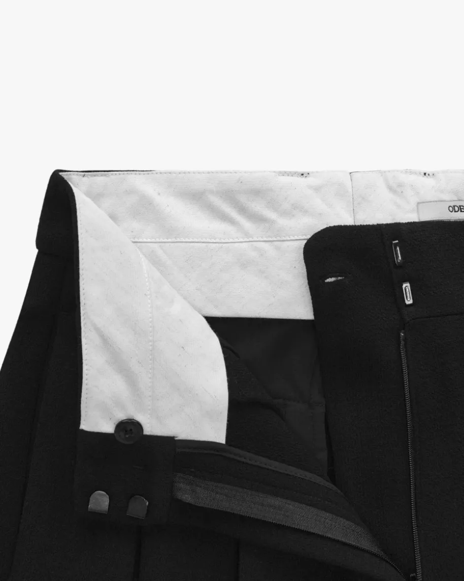 Hose für Damen von Odeeh in Schwarz. Das deutsche Designerduo hinter Odeehverbindet handwerkliche Präzision mit expressiven Prints und Couture-Flair –made in Germany. Auch dieses klassische Modell verwandelt sich durch diemodische Silhouette mit weitem Bein sowie der fein strukturierten Qualität ineinen modernen Begleiter mit Stil.