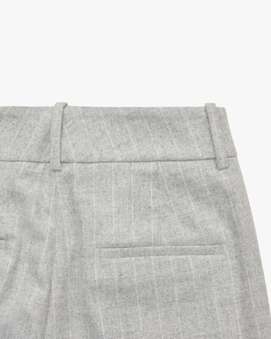 Hose für Damen von Peserico Easy in Hellgrau und Weiß. Das Modell präsentiertmit geradem Bein und hohem Bund, während der leichte Woll-Mix eine angenehmeHaptik verleiht. Das Nadelstreifen-Dessin sorgt zusammen mit der melierten Optikfür den letzten Schiff und kreiert so einen stilvollen Look für Office- oderCasual-Looks.