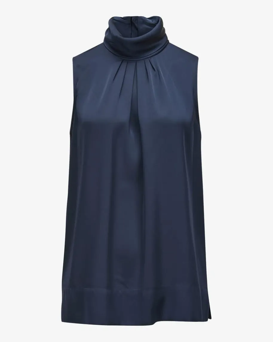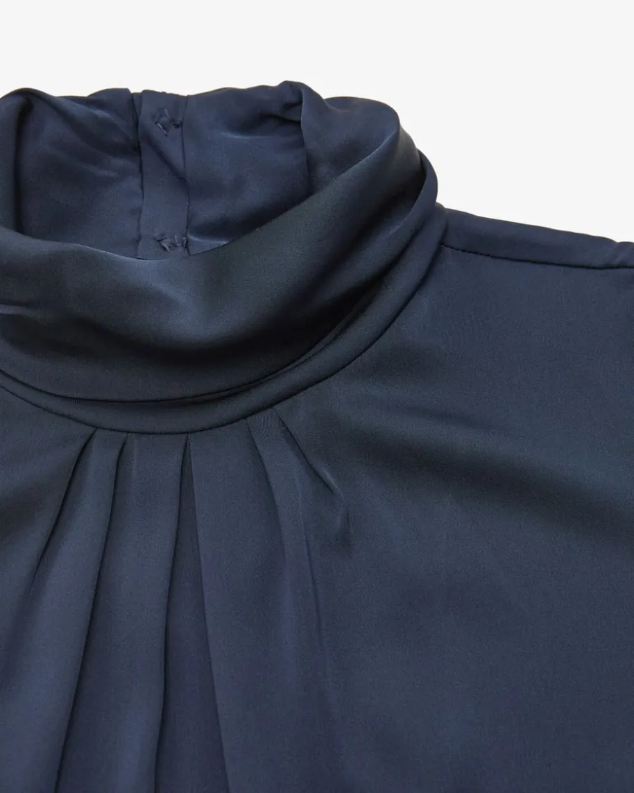 Huba Seidenblusentop für Damen von Hemisphere in Navy. Während die feminineBlusen-Aufmachung mit hohem Stehkragen einen eleganten Begleiter für stilvolleLooks schafft, sorgt die elastische Seiden-Qualität für haptische Highlights.