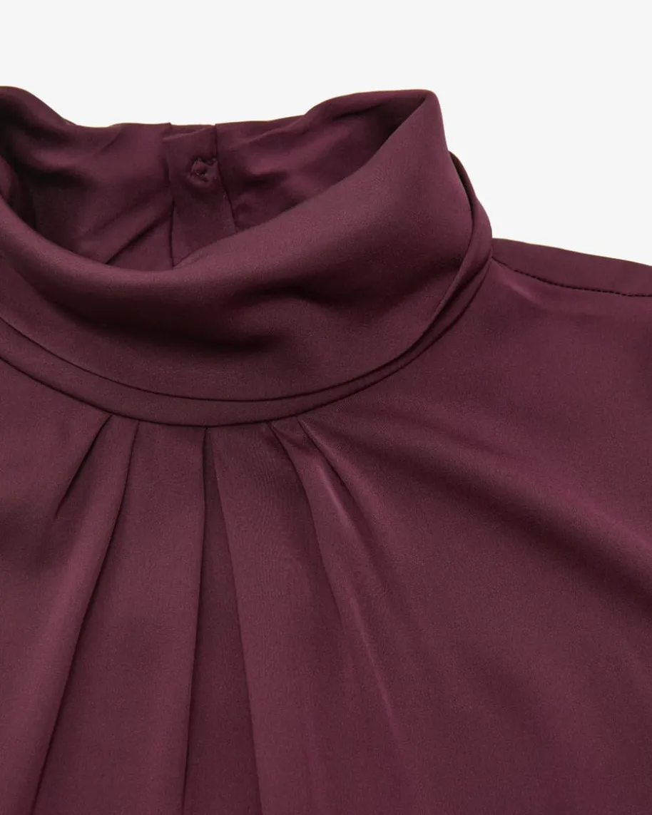 Huba Seidenblusentop für Damen von Hemisphere in Bordeaux. Während die feminineBlusen-Aufmachung mit hohem Stehkragen einen eleganten Begleiter für stilvolleLooks schafft, sorgt die elastische Seiden-Qualität für haptische Highlights.