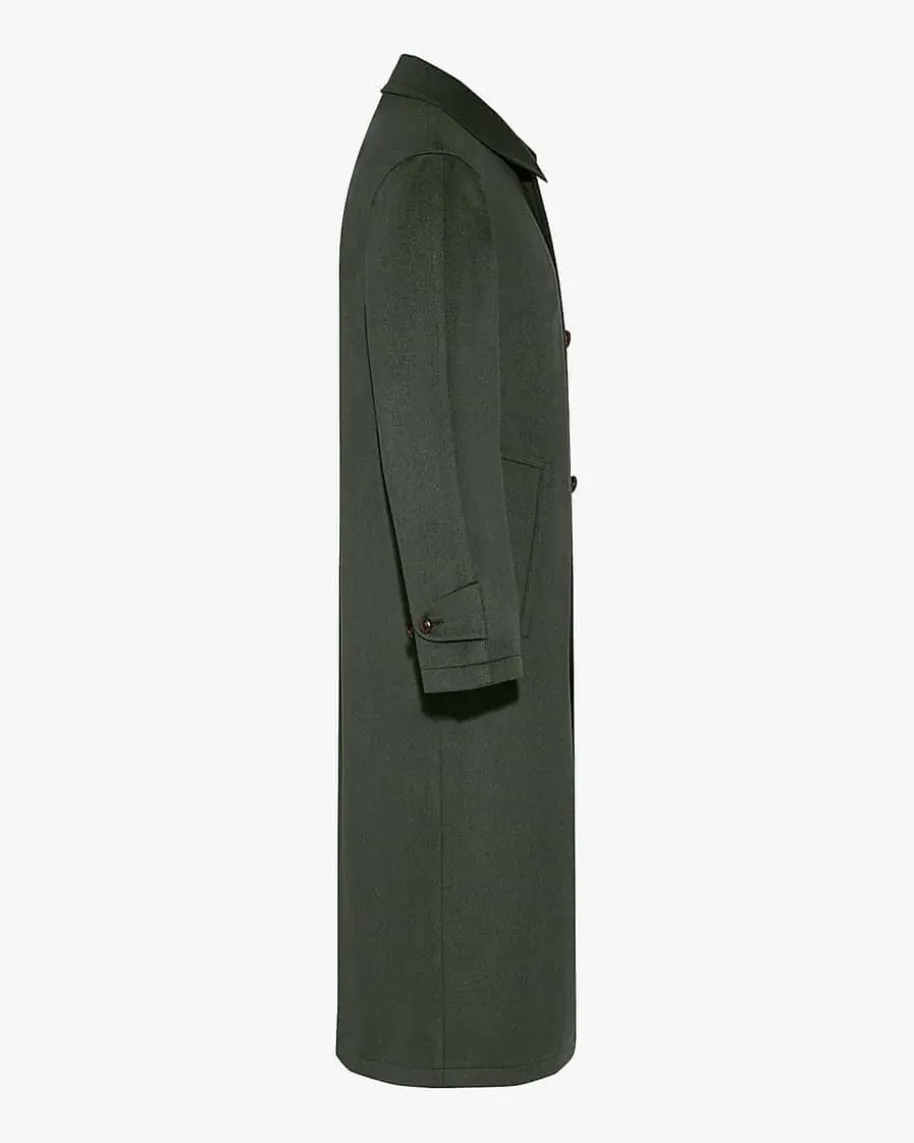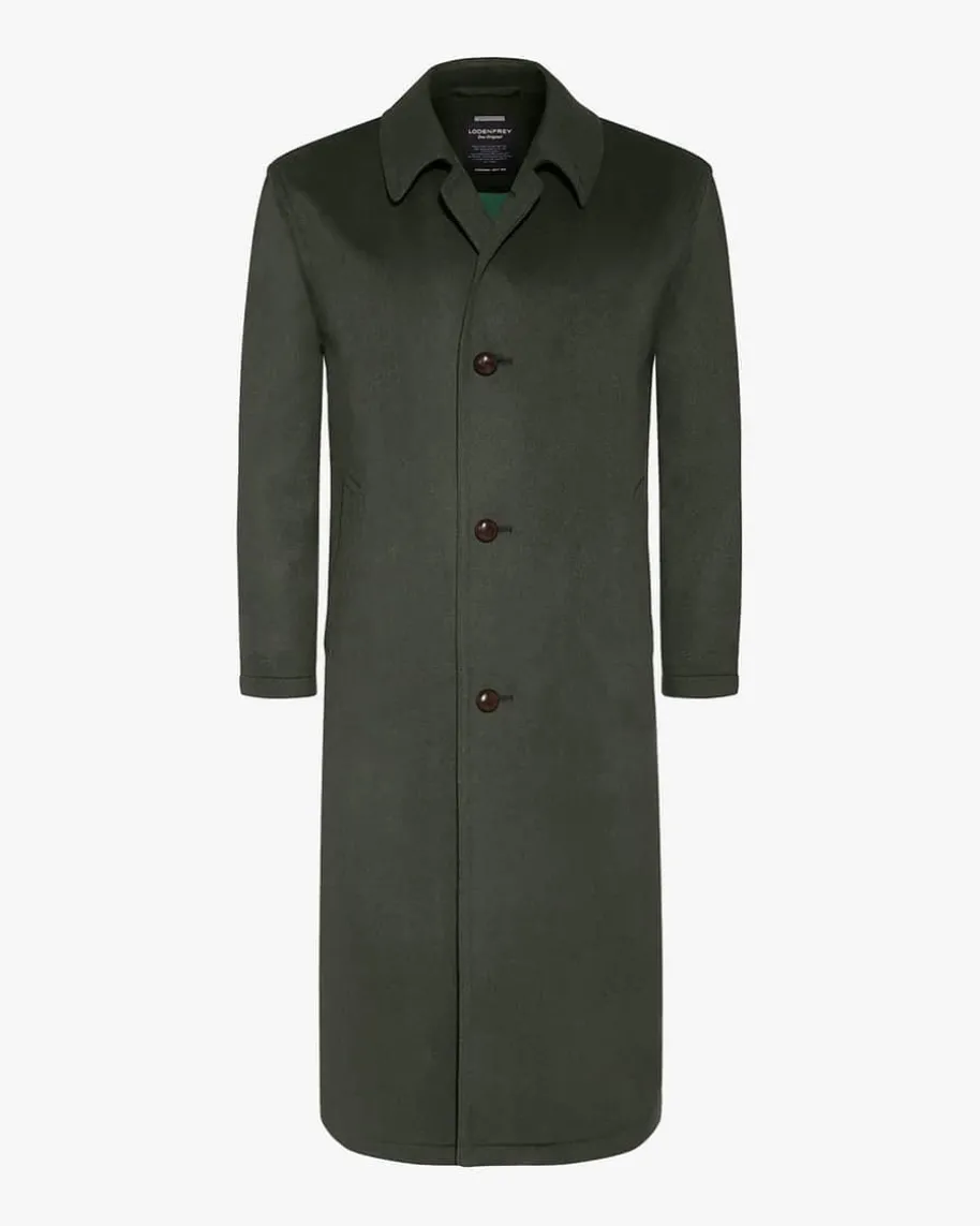 Hubertusmantel für Herren von LODENFREY in Dunkelgrün. Zeitlos klassisch undtraditionell präsentiert sich dieser gerade geschnittene Hubertusmantel aushochwertiger Schurwolle. Charakteristische Details wie die lederbezogenenKnöpfe, die geknöpften Armriegel und die beiden Seitentaschen unterstreichen denwertigen Look. Für einwandfreien Sitz und uneingeschränkte Bewegungsfreiheitsorgt die namensgebende Hubertusfalte im Rücken.
