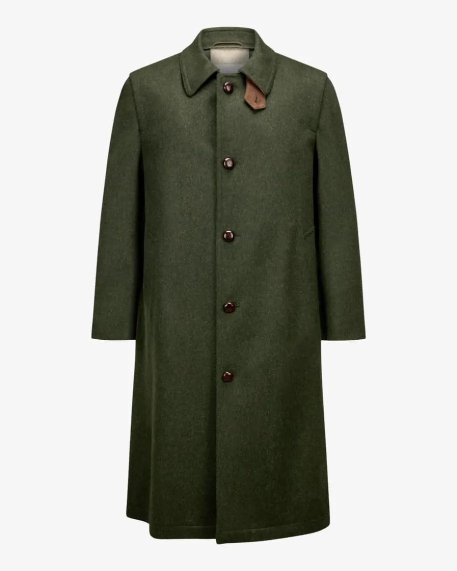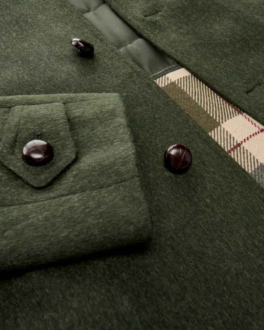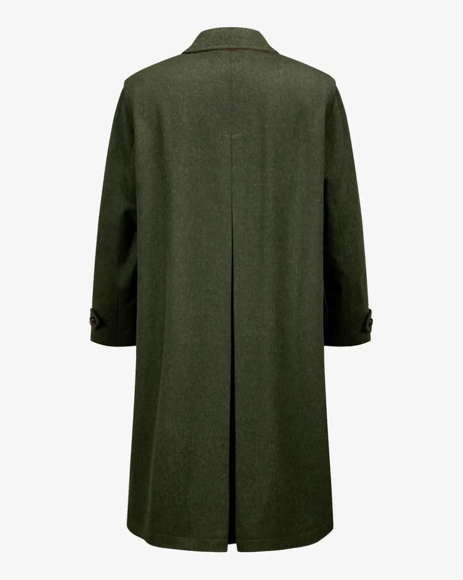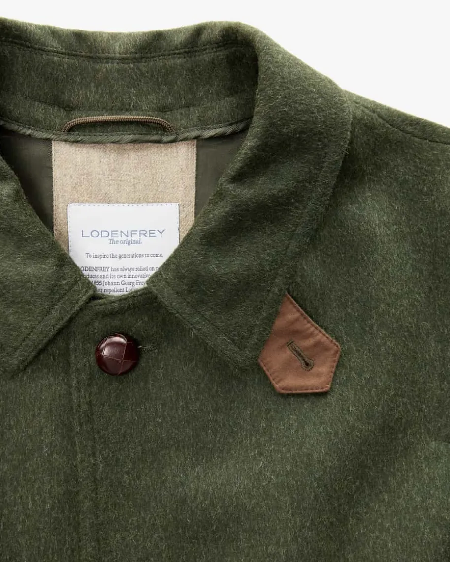 Hubertusmantel für Herren von LODENFREY in Dunkeloliv. Das wasserabweisendeModell überzeugt dank hochwertiger Schurwoll-Alpaka-Loden-Qualität undtraditioneller Details. Klassische Elemente wie der Umlegekragen, dekorativeRiegel an den Ärmelenden sowie ein die rückseitige Hubertusfalte verleihen demDesign eine traditionelle Note. Das heraustrennbare zusätzliche Innenfutter mitKaro-Muster sorgt für angenehmen Tragekomfort.