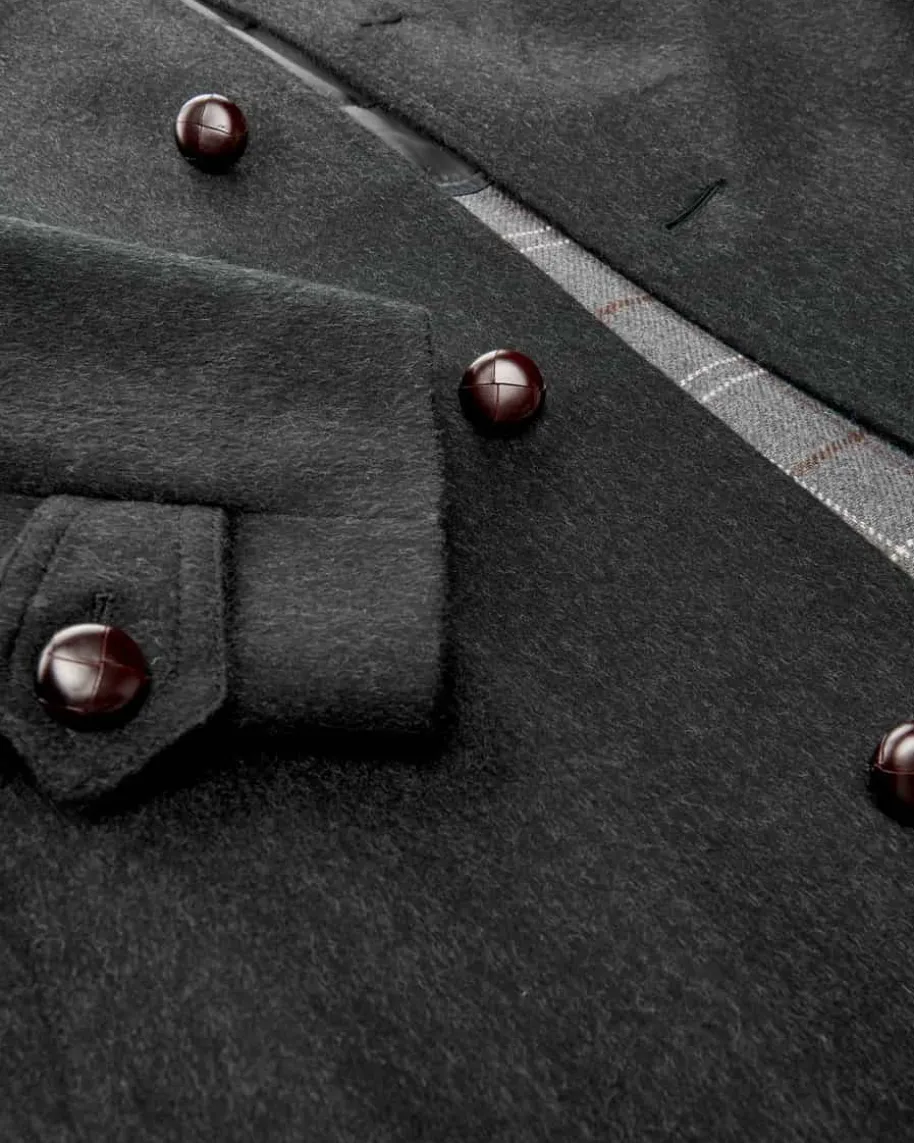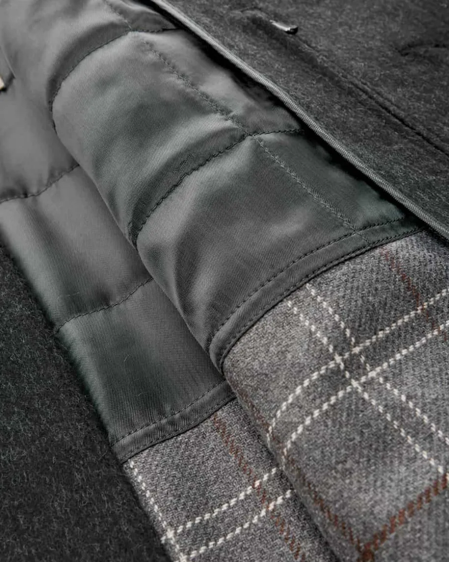 Hubertusmantel für Herren von LODENFREY in Anthrazit. Das wasserabweisendeModell überzeugt dank hochwertiger Schurwoll-Alpaka-Loden-Qualität undtraditioneller Details. Klassische Elemente wie der Umlegekragen, dekorativeRiegel an den Ärmelenden sowie ein die rückseitige Hubertusfalte verleihen demDesign eine traditionelle Note. Das heraustrennbare zusätzliche Innenfutter mitKaro-Muster sorgt für angenehmen Tragekomfort.