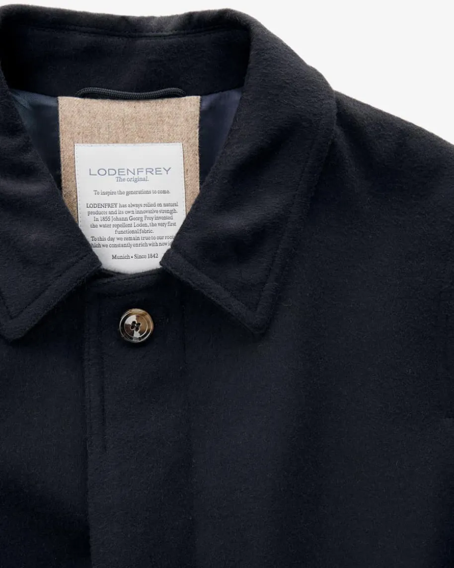 Hubertusmantel für Herren von LODENFREY in Dunkelblau und Dunkelgrün. Daswasserabweisende Modell überzeugt dank hochwertiger Schurwoll-Alpaka-Loden-Qualität und kontrastfarbener Details. Klassische Elemente wie der Umlegekragen,dekorative Riegel an den Ärmelenden sowie ein geknöpfter Gehschlitz verleihendem Design eine traditionelle Note.