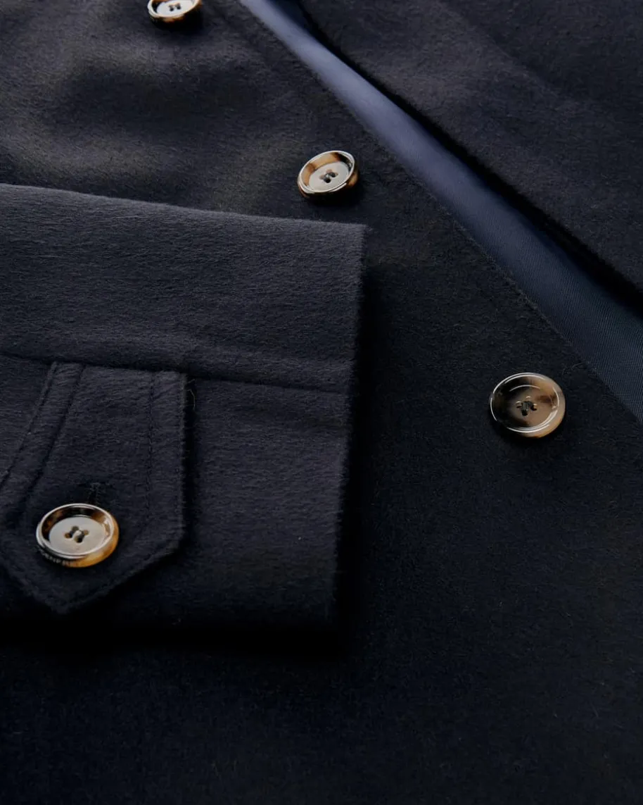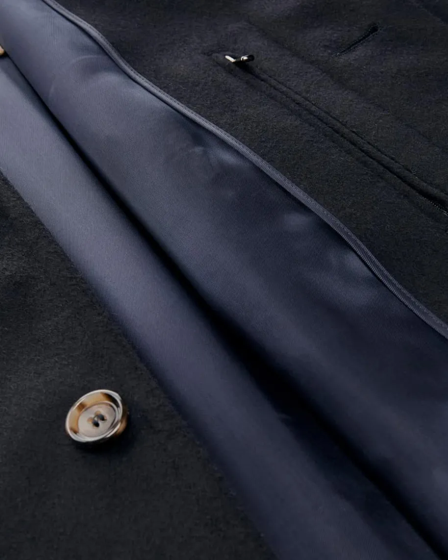 - Seitliche kurze Schlitze auf Taschenhöhe
