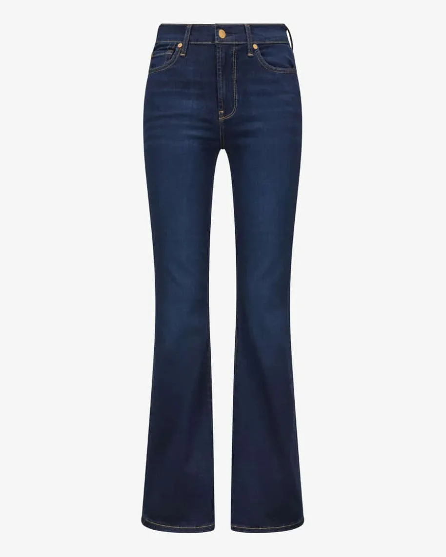 HW Ali Jeans Slim Iluusion für Damen von 7 For All Mankind in Dunkelblau. DasModell präsentiert sich mit Kontrastnähten und 5 Pocket-Design im klassischenDenim-Look, während die ausgestellte Passform für ein modisches Gesamtbildsorgt. Die elastische Material-Qualität sorgt zudem für einen hohenTragekomfort.