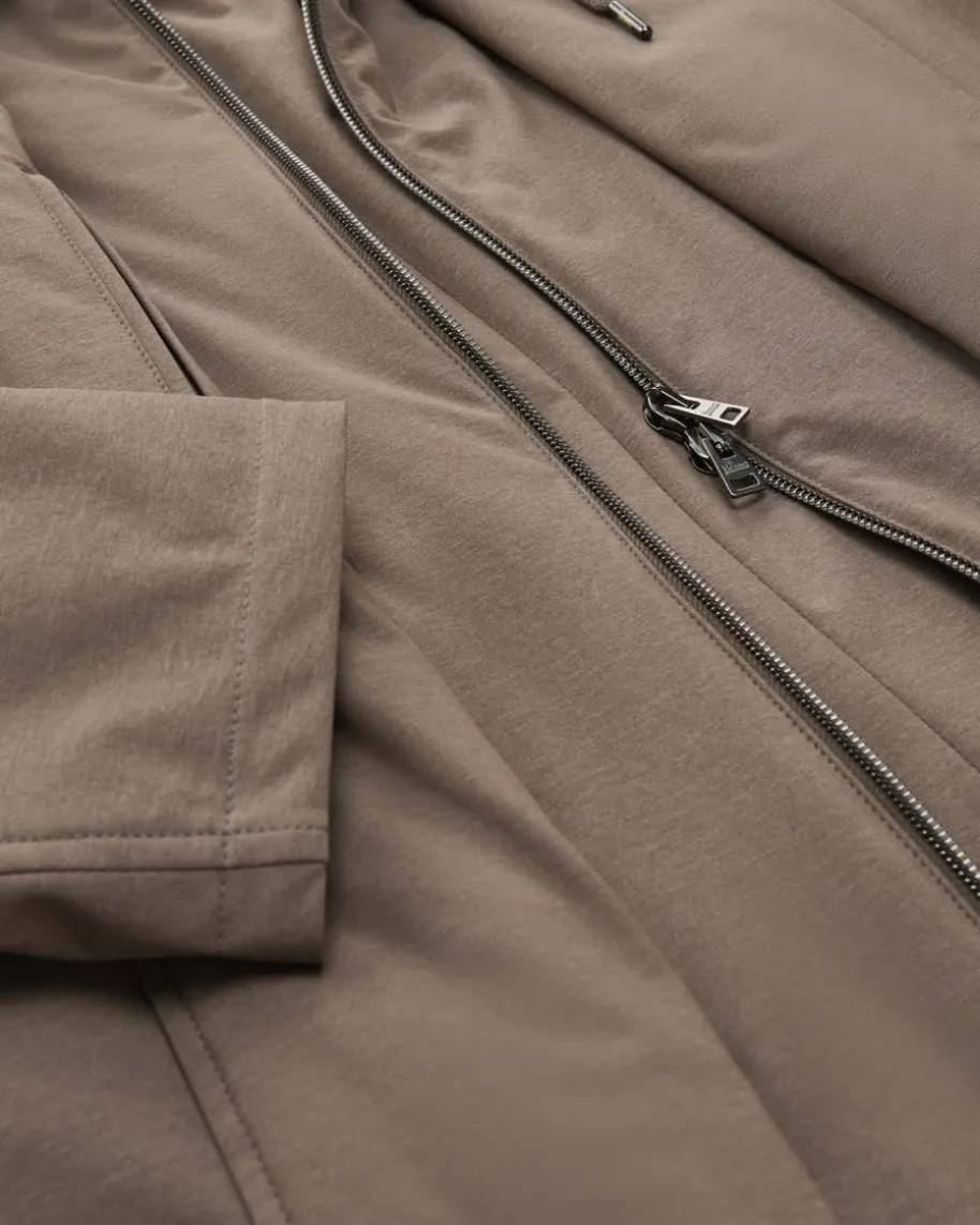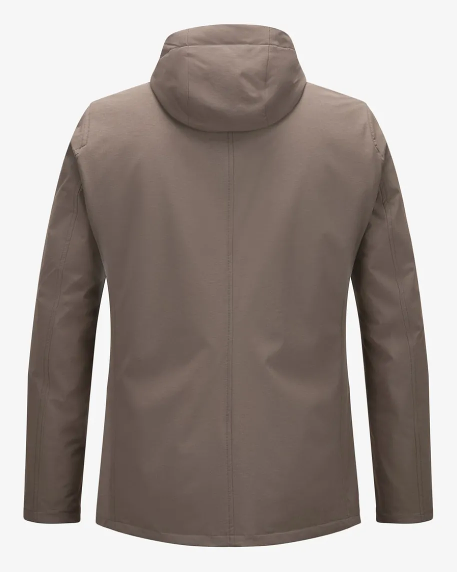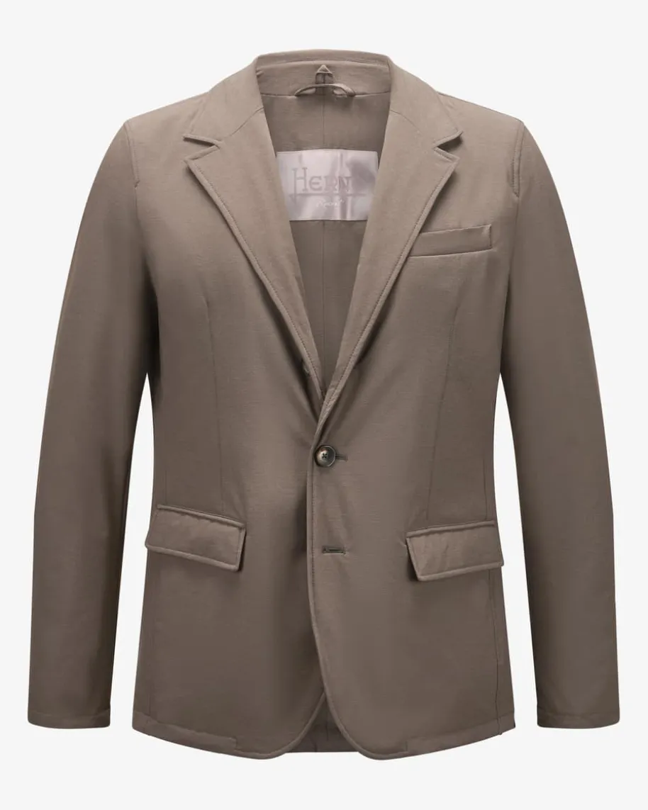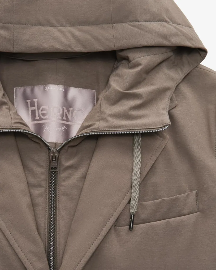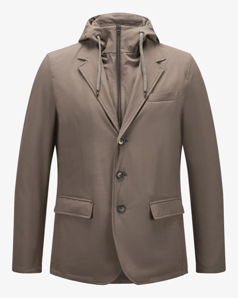 Hybrid-Sakko für Herren von Herno in Graubraun. Das Modell präsentiert sich dankder maskulinen Optik und abtrennbarer Blende mit Kapuzenkragen im sportivenLook, während klassische Details einen stilvollen Business-Look mit modischemTwist schaffen. Die elastische Material-Verarbeitung in melierter Optik rundetdas innovative Design gekonnt ab.