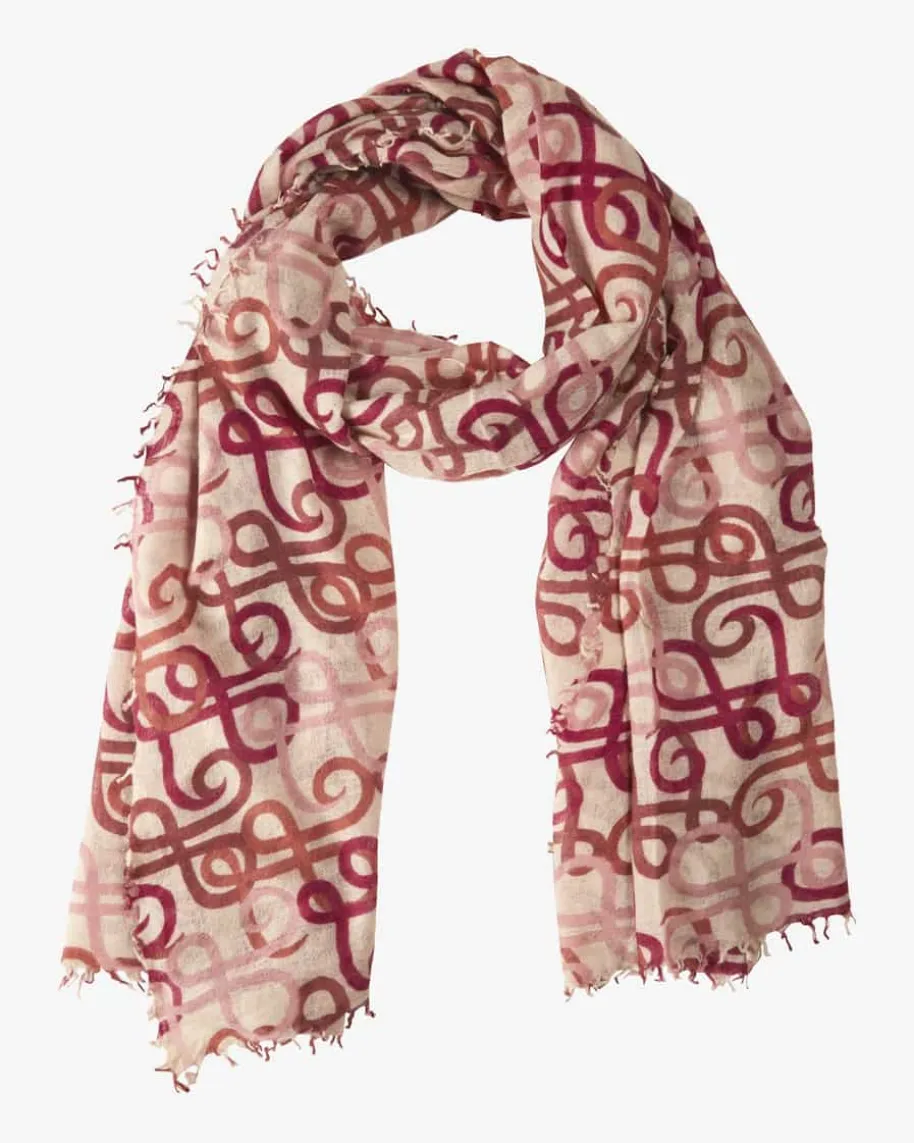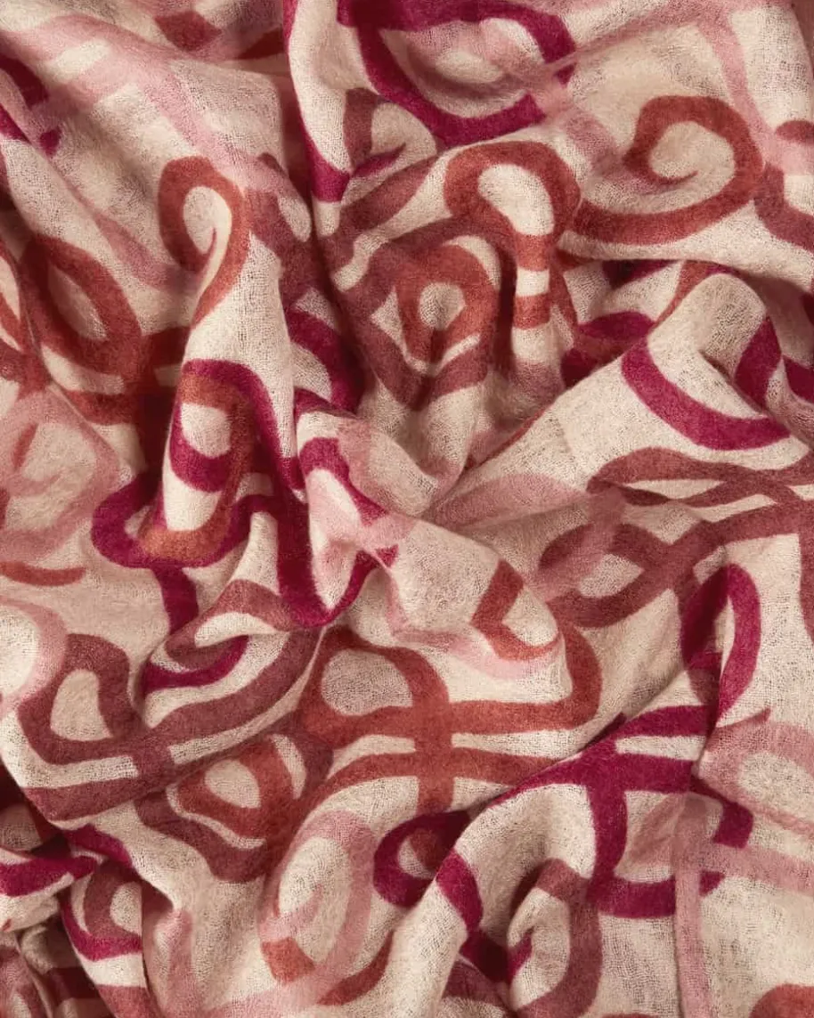 Hydabig Cashmere-Schal für Damen von Hemisphere in Fuchsia, Terrakotta undCreme. Dank der Verwendung von hochwertiger Cashmere-Qualität insemitransparenter Aufmachung begeistert das Accessoire mit besonders angenehmerHaptik, während das Allover-Dessin mit geschwungenem Monogramm ein besonderesAccessoire mit labeltypischem Charme kreiert.