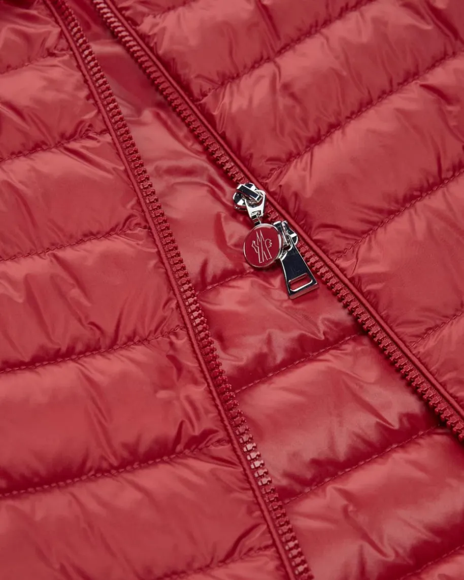 Igens Daunenweste für Damen von Moncler in Rot. Denkt man an hochwertige, warmeDaunenjacken, kommt einem unweigerlich das italienische Traditionslabel Monclerin den Sinn. Auch mit diesem leichten Modell präsentiert das Label dank derhochwertigen Daunen-Feder-Füllung einen optimalen Begleiter für dieÜbergangszeit, während das dezent changierende Steppmuster einen modischenFashion-Favoriten schafft.
