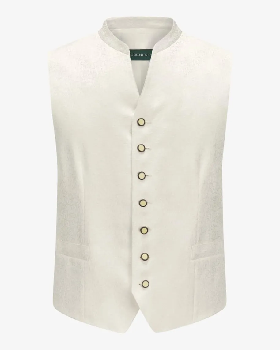 Inzing Trachtenweste für Herren von LODENFREY in Ecru. Das Modell überzeugtdurch das feine Jaquard-Dessin auf der Vorderseite sowie die changierendeRückseite in traditioneller Aufmachung, während klassische Details einenperfekten Begleiter für stilvolle Trachten-Looks schaffen.