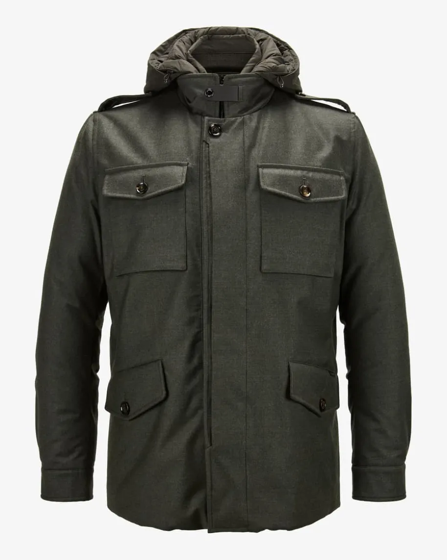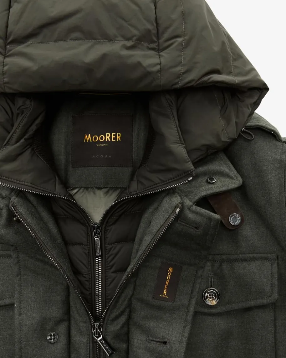 Isac Daunenjacke für Herren von Moorer in Oliv. Das Modell präsentiert sich inmaskuliner Aufmachung dank der funktionalen sowie sportiven Details, während diehochwertige Daunen-Feder-Füllung für eine perfekte Wärmeisolation sorgt.Zugleich versprechen die abnehmbare Passe sowie Kapuze zusätzlichen Komfort ankalten Tagen – ein wahrer Alltagsfavorit für jede Eventualität.