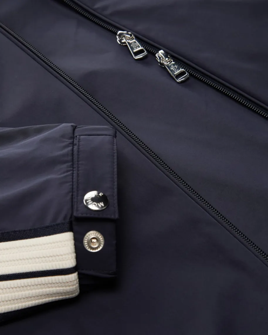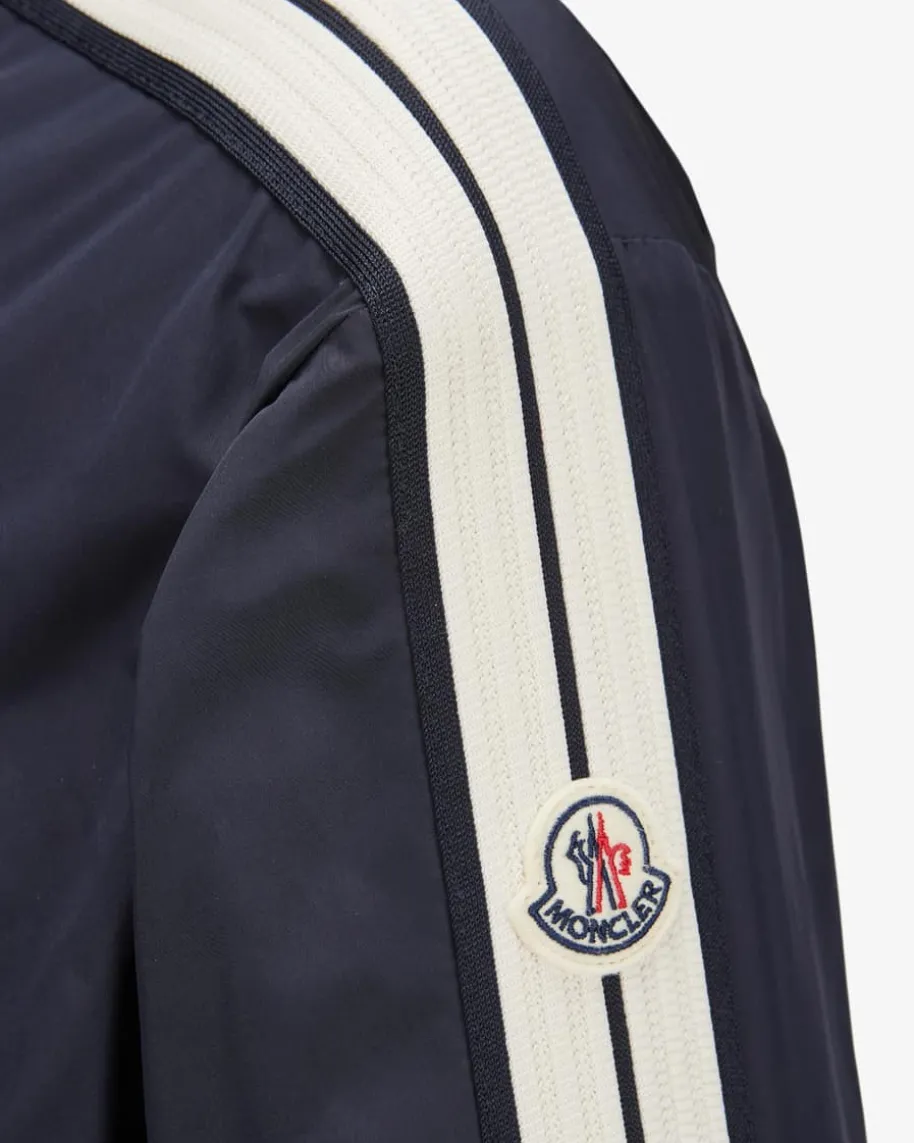 Jacke für Herren von Moncler in Navy und Weiß. Das Modell präsentiert sich dankmodischer Kontraststreifen in sportiver Aufmachung, während elastische Einsätzeund Bündchen den perfekten Sitz versprechen.