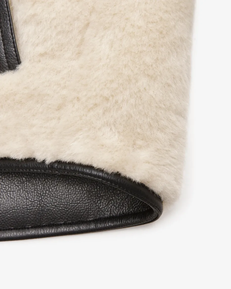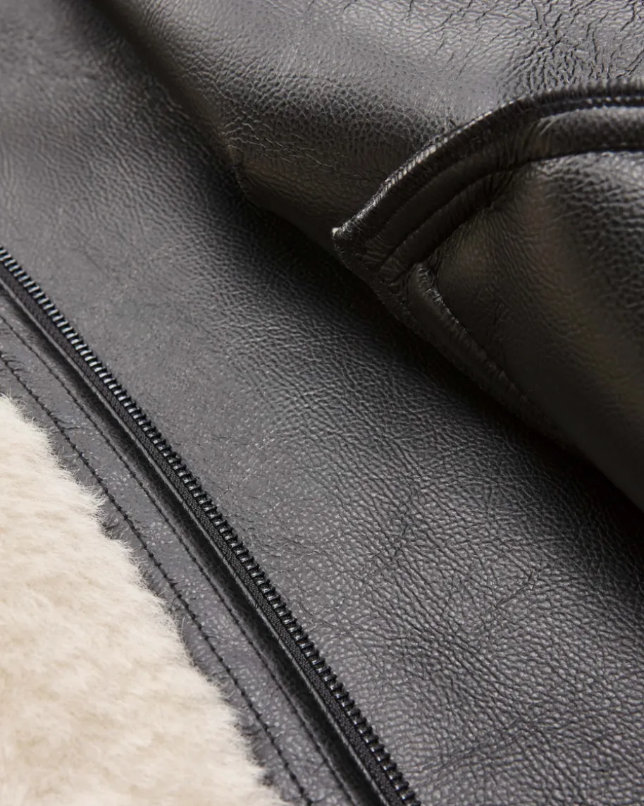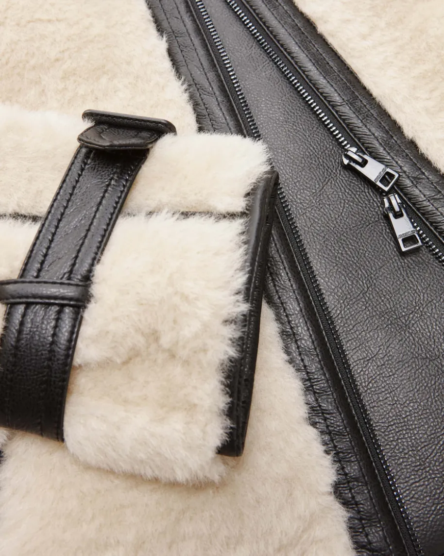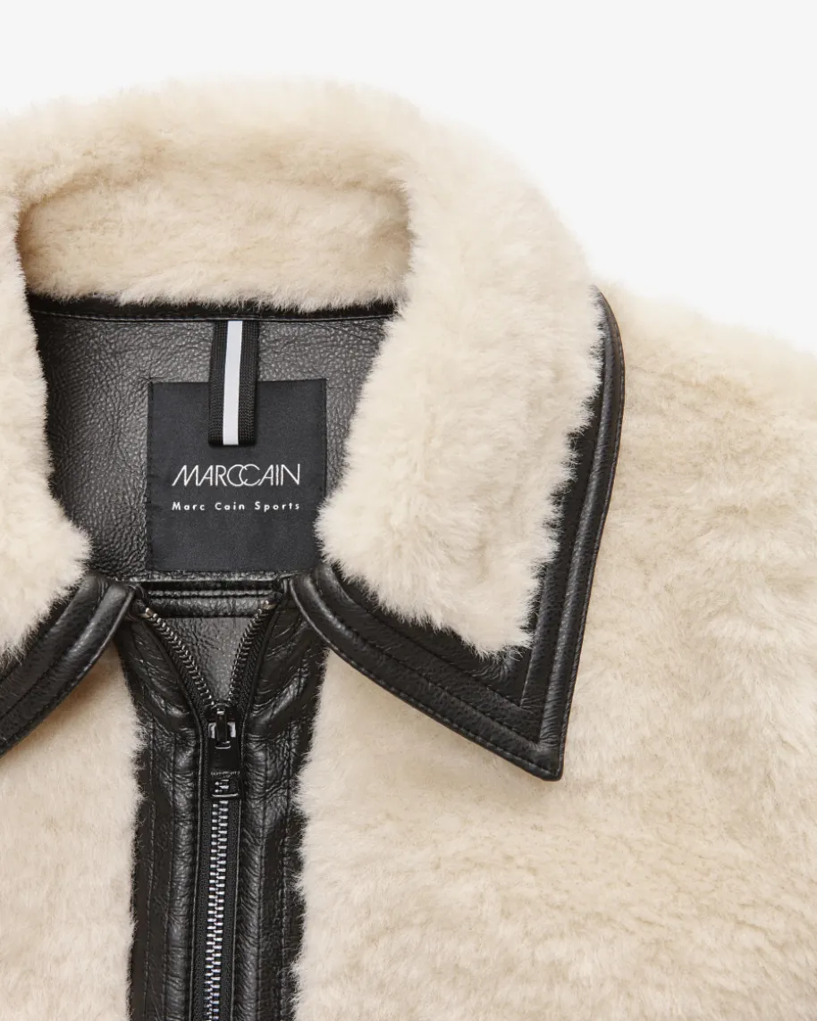 Jacke für Damen von Marc Cain in Ecru und Schwarz. Die Deutsche Marke steht fürselbstbewusste, feminine Looks. Kombistarke Designs mit hohem Qualitätsanspruch– bekannt für Prints & Strick. Während die weiche Material-Qualität inSchaffell-Optik zusammen mit kontrastierenden Kunstleder-Partien einen modischenHerbst-Look im Biker-Stil kreiert, verleiht die Oversize-Schnittführung einenlegeren Touch.