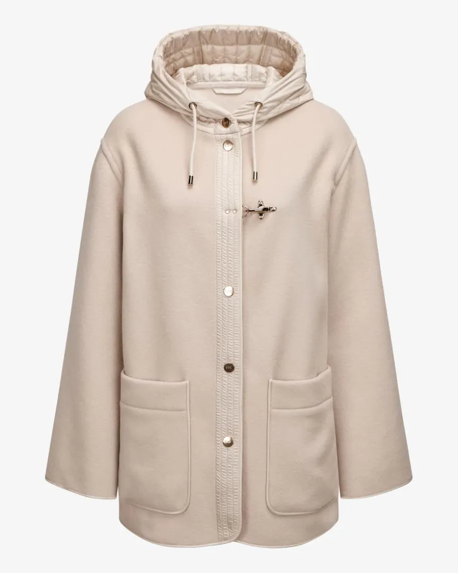 Jacke für Damen von Fay in Beige. Die italienische Marke aus dem Hause Tod’s istbekannt für ihre ikonischen Jacken und Mäntel, die klassische Eleganz mitFunktionalität verbinden. Auch dieses Modell überzeugt mit raffiniertemMaterialmix aus gesteppter Kapuze und weichem Woll-Mix. Der goldfarbeneKarabiner-Haken rundet den modischen Look labeltypisch ab.