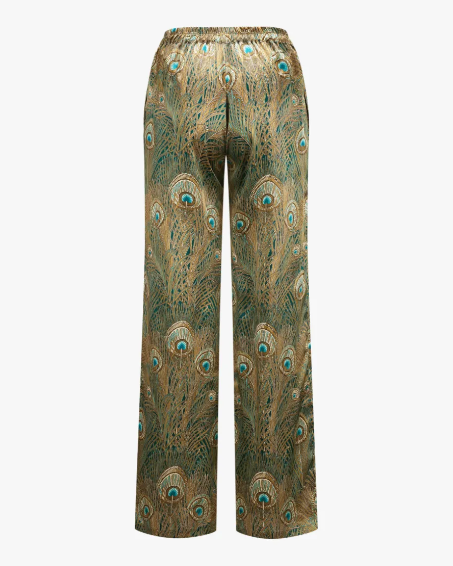 Jade Seiden-Pyjamahose für Damen von biscuits. luxuryessentials in Oliv, Jade und Dunkelgrün. Das Münchner Labelverbindet luxuriöse Seidenmode mit modernem Lifestyle undeinem entspannten Lebensgefühl – stilvoll entworfen inMünchen für selbstbewusste Frauen. Auchdieses Modell mit feinem Pfauenfedern-Print überzeugt durchseine leichte, fließende Qualität, die ein angenehmesTragegefühl garantiert und zugleich eine elegante Silhouetteschafft. Ob als stilvolle Loungewear oder luxuriöseNachtwäsche – das Modell ist vielseitig tragbar, auch inKombination mit dem passenden Kimono.