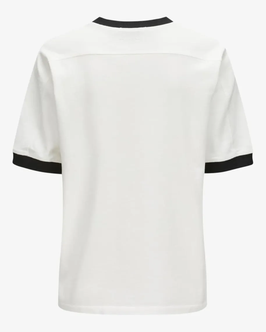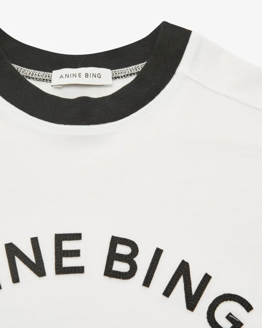 Jaylin T-Shirt für Damen von Anine Bing in Ecru und Schwarz. 2012 in Los Angelesgegründet, vereint das Label skandinavischen Minimalismus mit amerikanischerCoolness. Das Modell in moderner Passform überzeugt dank hochwertiger Baumwoll-Qualität, während die auffällige Logo-Applikation den Gesamtlook gekonntabrundet.
