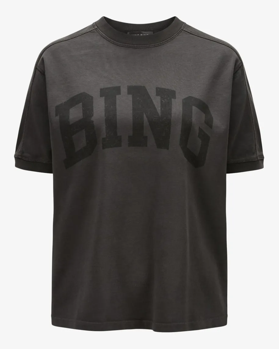 Jaylin T-Shirt für Damen von Anine Bing in Schwarz. Das Modell begeistert mitmodischer Oversize Passform und tonigem Logo-Print auf der Front. Diehochwertige Baumwoll-Qualität in Vintage-Optik sorgt für angenehmen Tragekomfortund rundet den sportiven Look harmonisch ab.