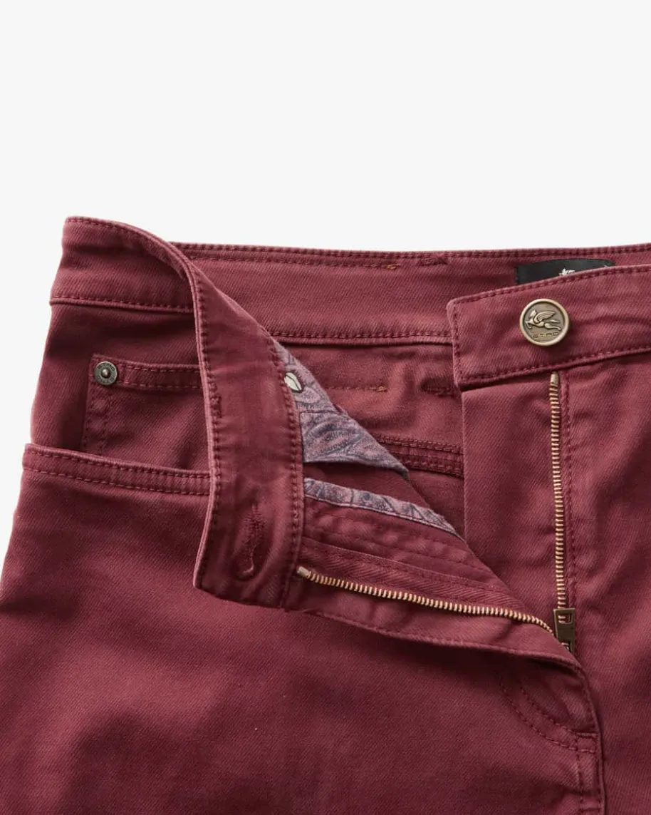 Jeans für Damen von Etro in Bordeaux. Dank des extralangen Schnitts mit weitem,leicht ausgestelltem Bein präsentiert sich das Modell als modischer Favorit,während die softe und leichte Baumwoll-Qualität für angenehme Tragemomentesorgt. Die tonale Logo-Stickerei sowie das Leder-Badge runden den Lookcharakteristisch ab.