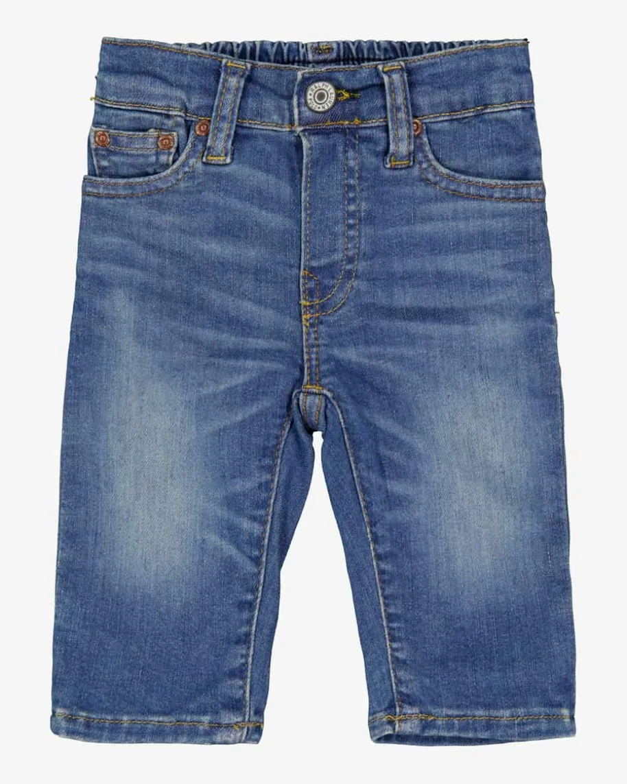 Jeans für Babys von Polo Ralph Lauren in Blau. Mit modischer Waschung undkontrastierenden Ziernähten präsentiert sich das Modell im charakteristischenDenim-Look. Zugleich verspricht die elastische Baumwoll-Qualität hohenTragekomfort für ihre Kleinen.