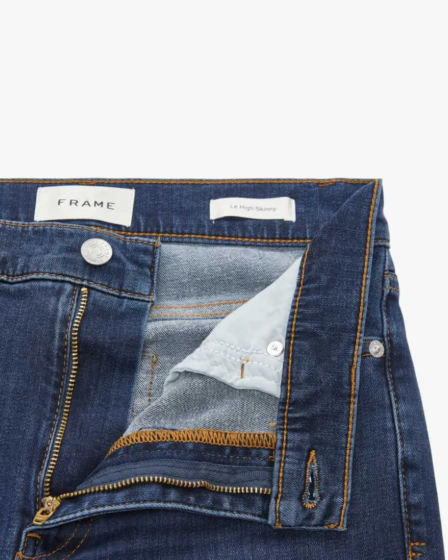 Jeans High Rise Skinny für Damen von Frame in Dunkelblau. Das Modell inhochwertigem Baumwoll-Mix überzeugt dank elastischer Qualität mit angenehmenTragemomenten, während die figurbetonte Passform einen zeitlosen und modernenDenim-Begleiter kreiert.