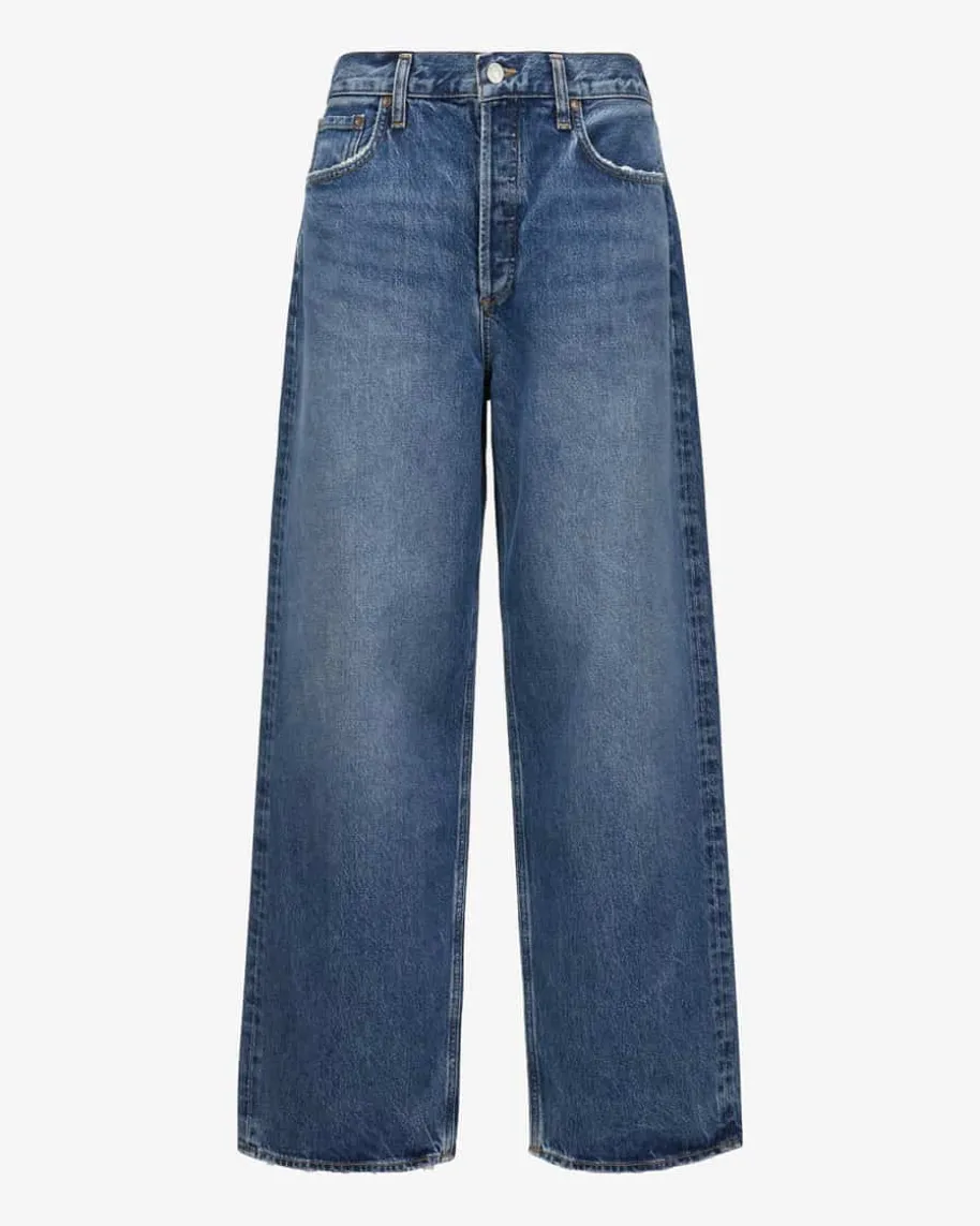 Jeans Low Slung Baggy für Damen von Agolde in Blau. Das Modell mit weitem Beinzeichnet sich durch den modischen Washed Effekt und dezente Destroyed- Detailsaus und besticht durch angenehme Baumwoll-Qualität. Die trendige Baggy- Passformrundet den Denim-Look gekonnt ab.