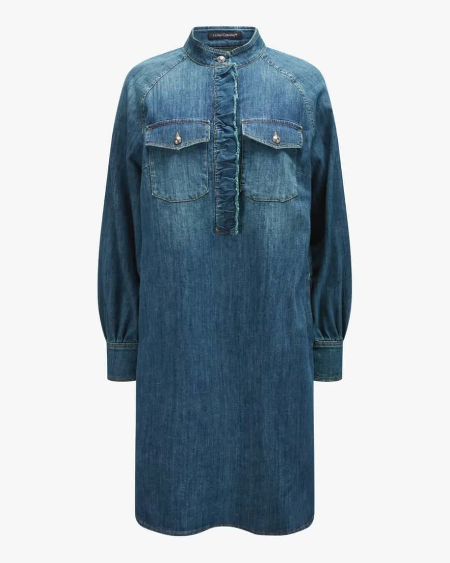 Jeanskleid für Damen von Luisa Cerano in Blau. Das Modell begeistert mitleichtem Baumwoll-Mix in Denim-Struktur, welcher ein angenehmes Tragegefühlbeschert. Das Rüschen-Detail und die auffälligen Knöpfe runden den Gesamtlookharmonisch ab und kreieren einen besonderen Look.