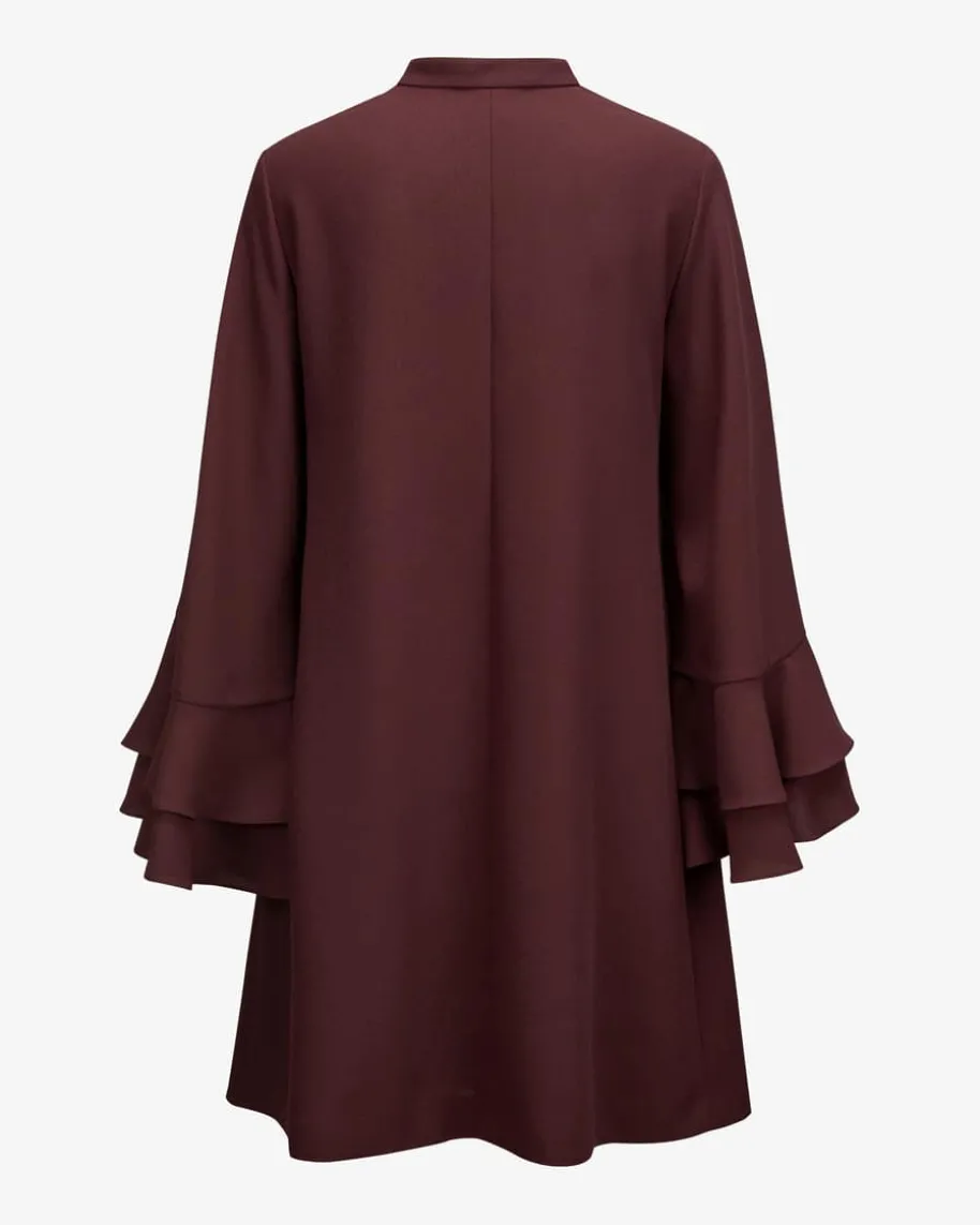 Jelena Kleid für Damen von SLY010 in Bordeaux. Das Modell in Crepé-Aufmachungüberzeugt mit angenehmen Tragemomenten, während die besonderen Ärmel einenfemininen Look kreieren.
