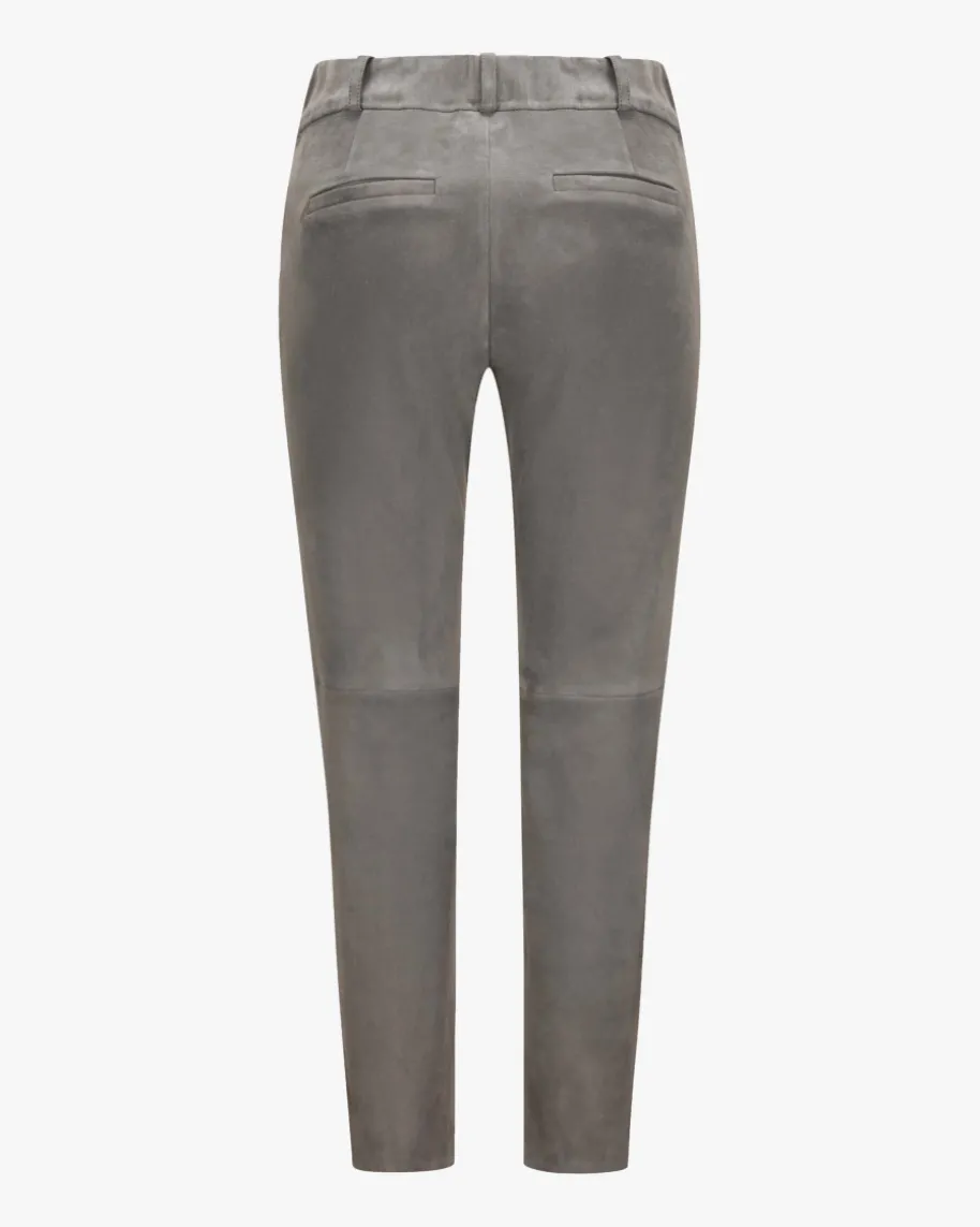 Jen 7/8-Lederhose für Damen von ARMA in Stein. Aus edlem Lammvelours bestichtdieses verkürzte Modell sowohl optisch als auch haptisch, während die dezentenKnieabnäher der verkürzten Hose einen modernen Touch verleihen.