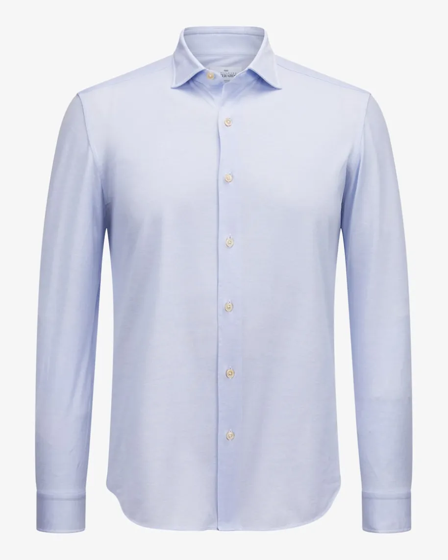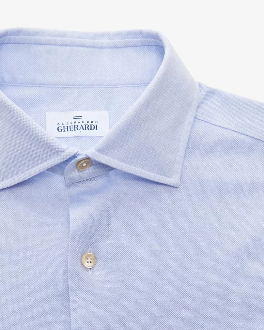 Jerseyhemd für Herren von Gherardi in Hellblau. Dank der angenehm-leichtenPiqué-Qualität präsentiert sich das Modell zugleich zeitlos und leger, währendperlmuttfarbene Knöpfe den letzten Schliff verleihen.