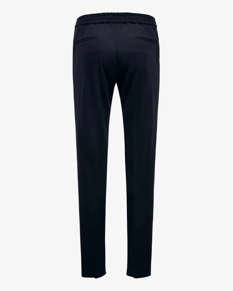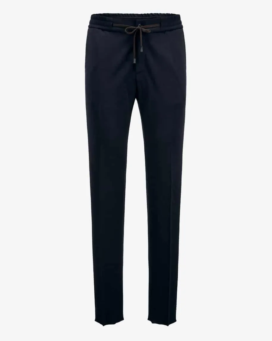 Schurwoll-Joggpants für Herren von Maurizio Baldassari in Navy. Das Modellbesticht durch die weiche Schurwoll-Qualität mit Tunnelzug als angenehmerBegleiter, welcher durch die Bügelfalten und klassische Details einen stilvollenTouch erhalten.